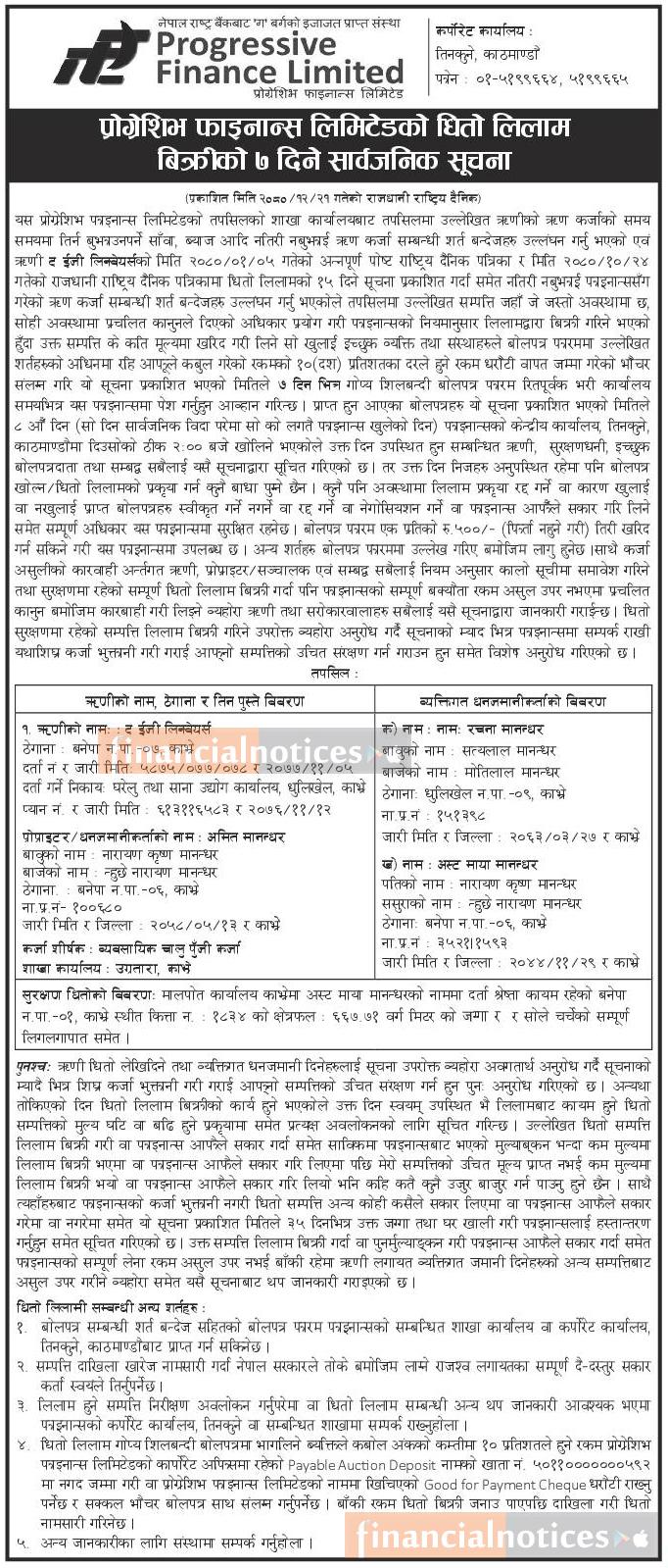 धितो लिलाम बिक्रीको ७ दिने सार्वजानिक सूचना