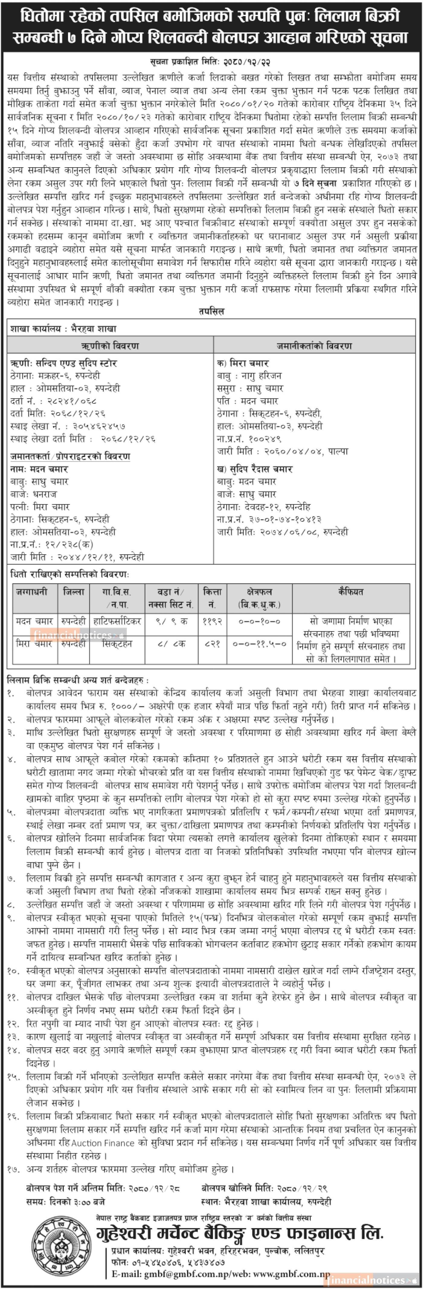 Kumari Bank Auction Notice for Non-Banking Assets at Mahendranagar, Kanchanpur -