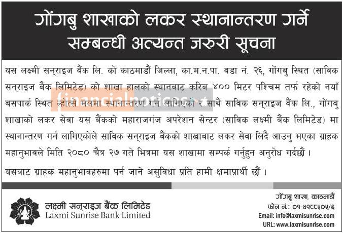 Published by Laxmi Sunrise Bank on 2080-12-22