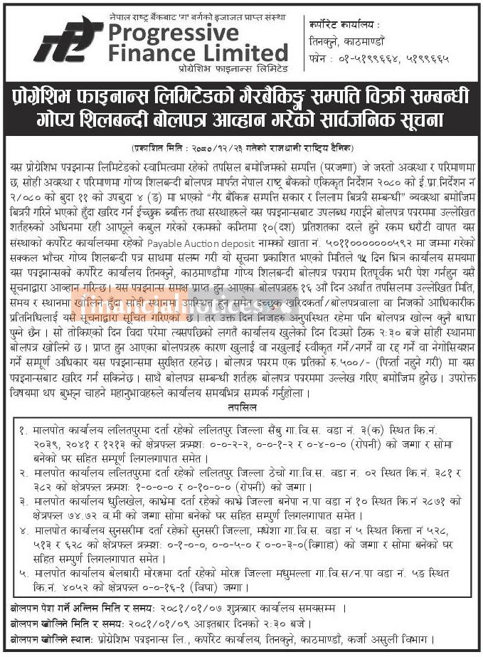 Kumari Bank Auction Notice for Non-Banking Assets at Mahendranagar, Kanchanpur -