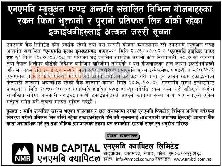 रकम फिर्ता भुक्तानी र पुरानो प्रतिफल लिने बारेको जरुरी सूचना