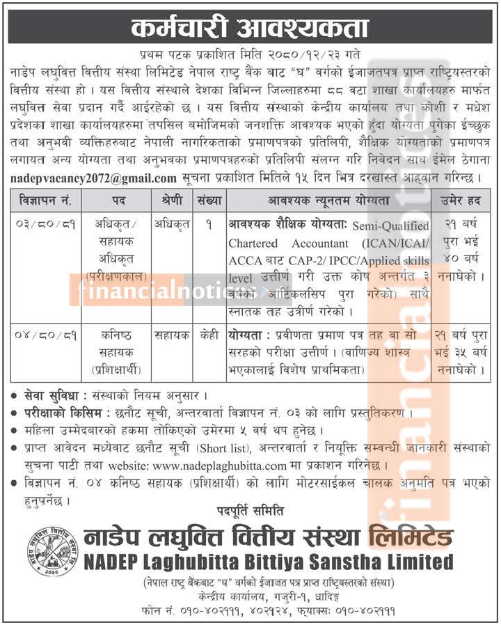 Swarojgar Laghubitta Announces Vacancy for Multiple Positions