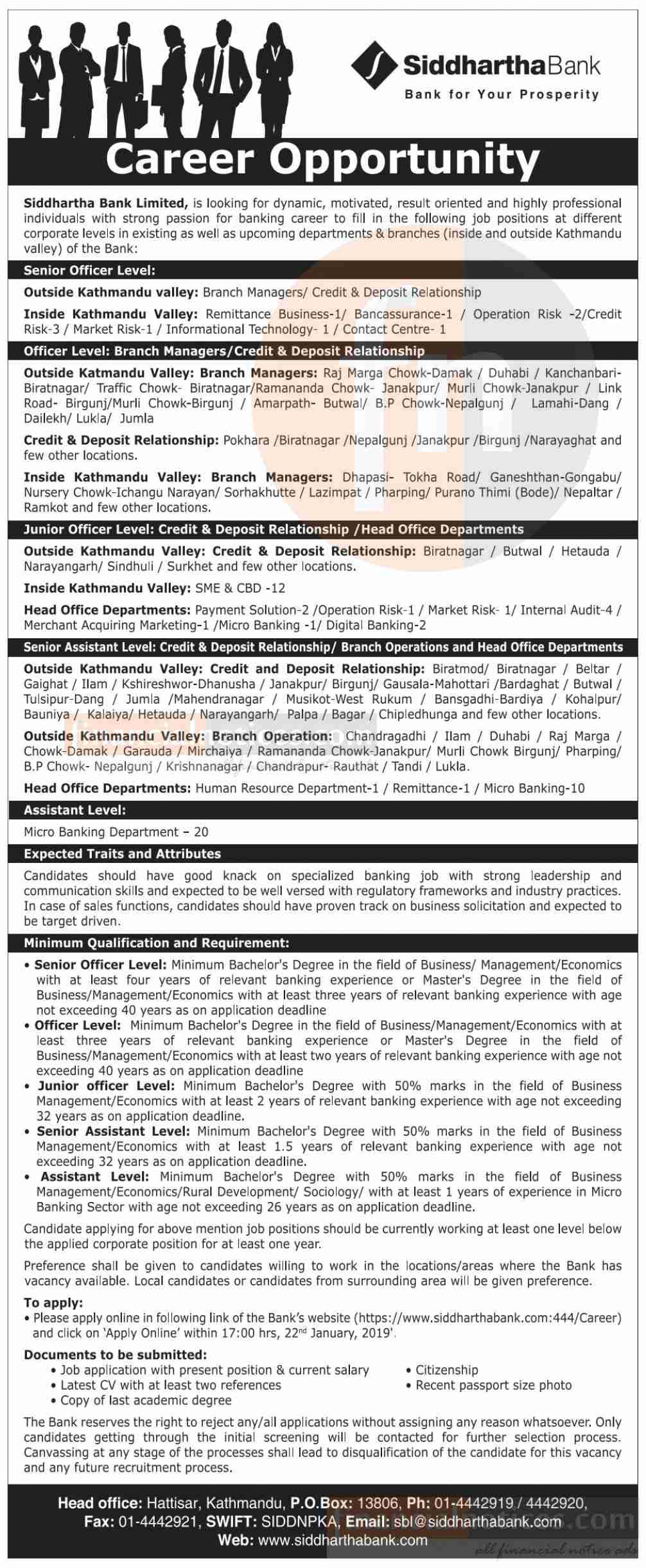 सिद्धार्थ बैँकमा ठूलो संख्यामा जागिर खुल्यो