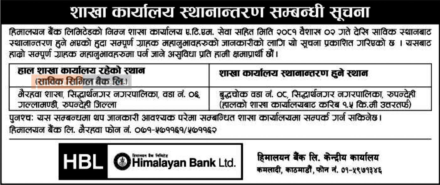 Published by Himalayan Bank Ltd on 2080-12-26