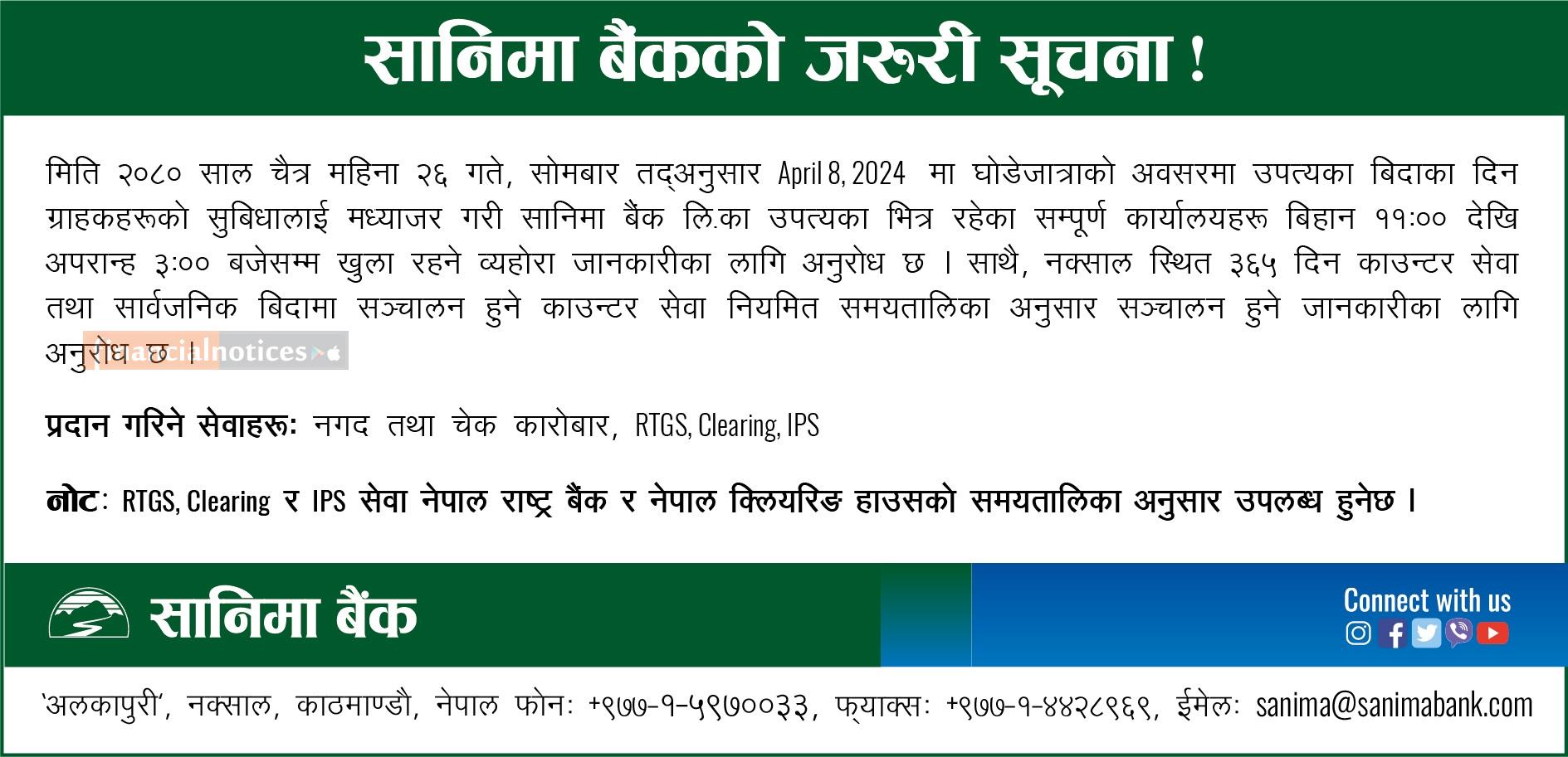 सानिमा बैंकको अत्यन्त जरुरी सूचना -
