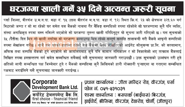 घरजग्गा खालि गर्ने बारे ३५ दिने अत्यन्त जरुरी सूचना