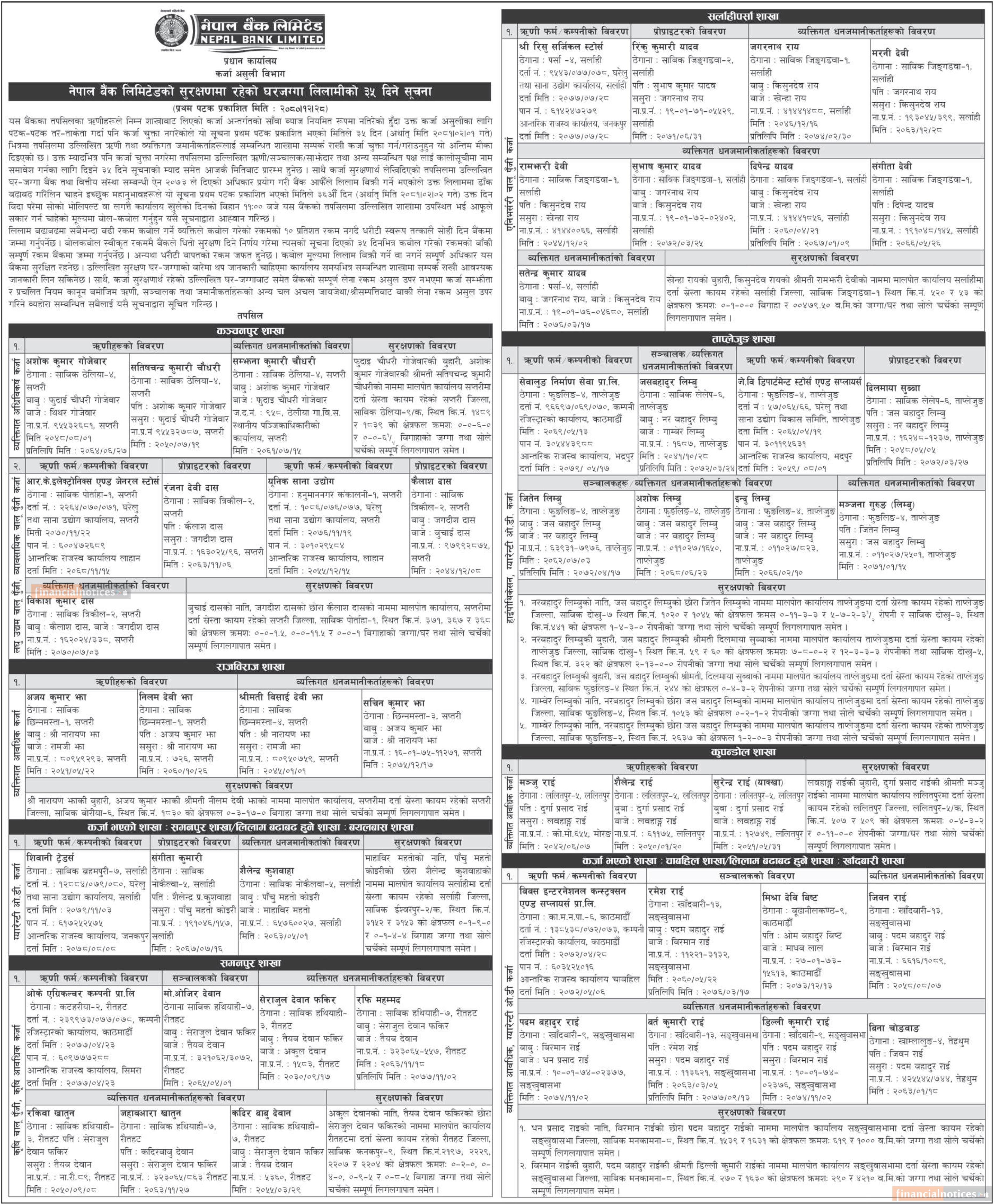 नेपाल बैंकको सुरक्षणमा रहेको घरजग्गा लिलामको ३५ दिने सूचना