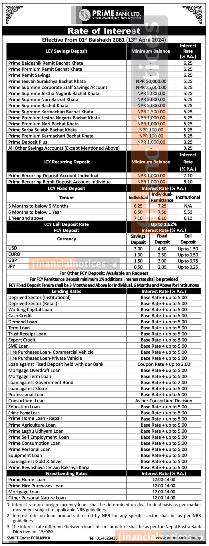 प्राइम बैंकको नयाँ ब्याजदर सार्वजानिक, हेर्नुहोस् कुन खातामा कति पुग्यो ?