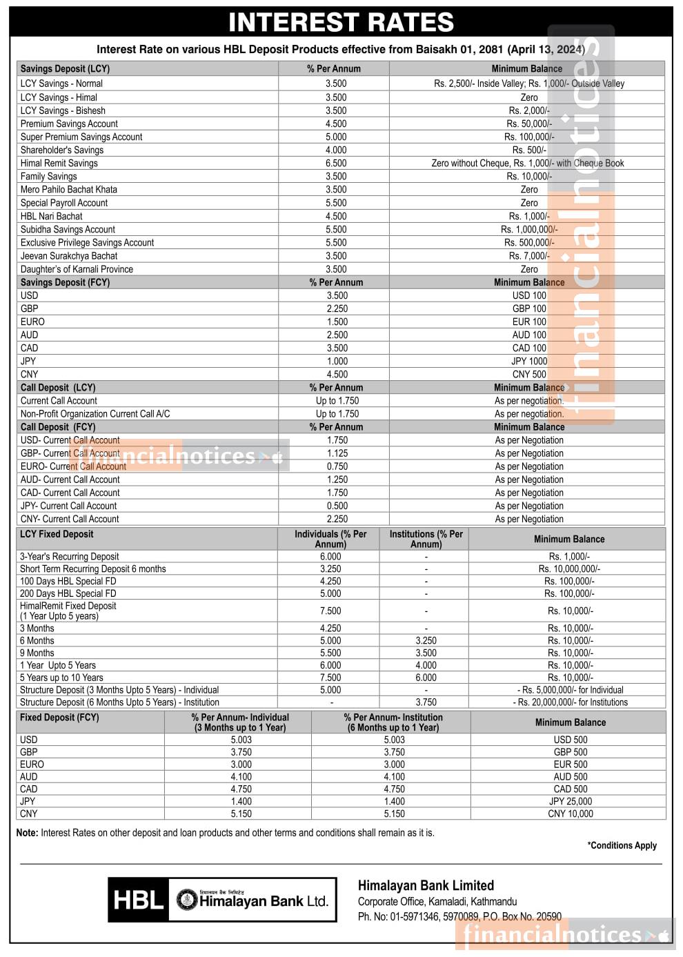 हिमालयन बैंकको नयाँ ब्याजदर सार्वजनिक सम्बन्धी सूचना - Interest Rates -
