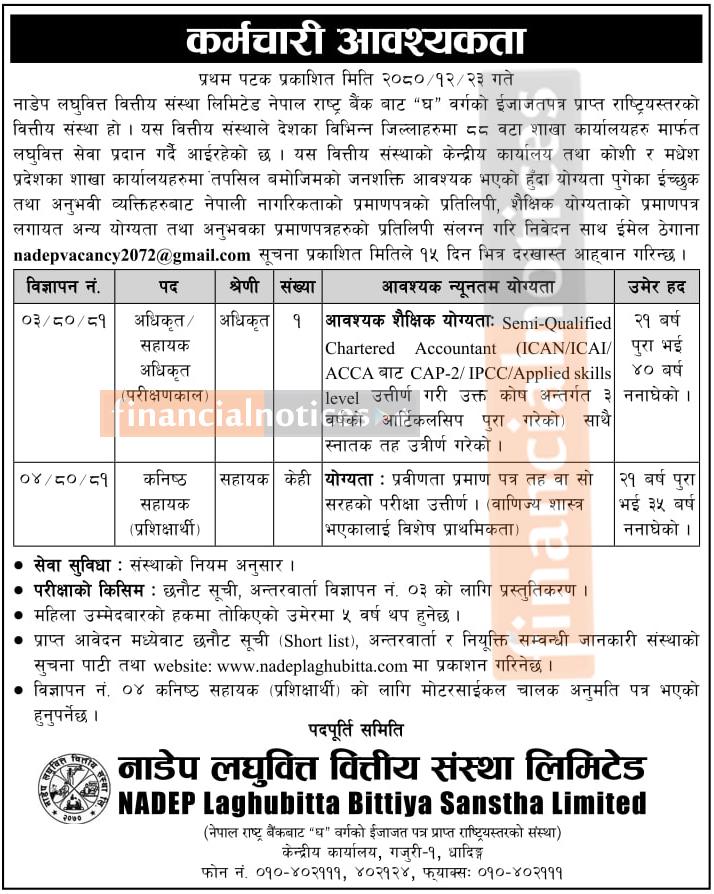 लघुवित्तमा जागिर खुल्यो । - JOB Opportunity