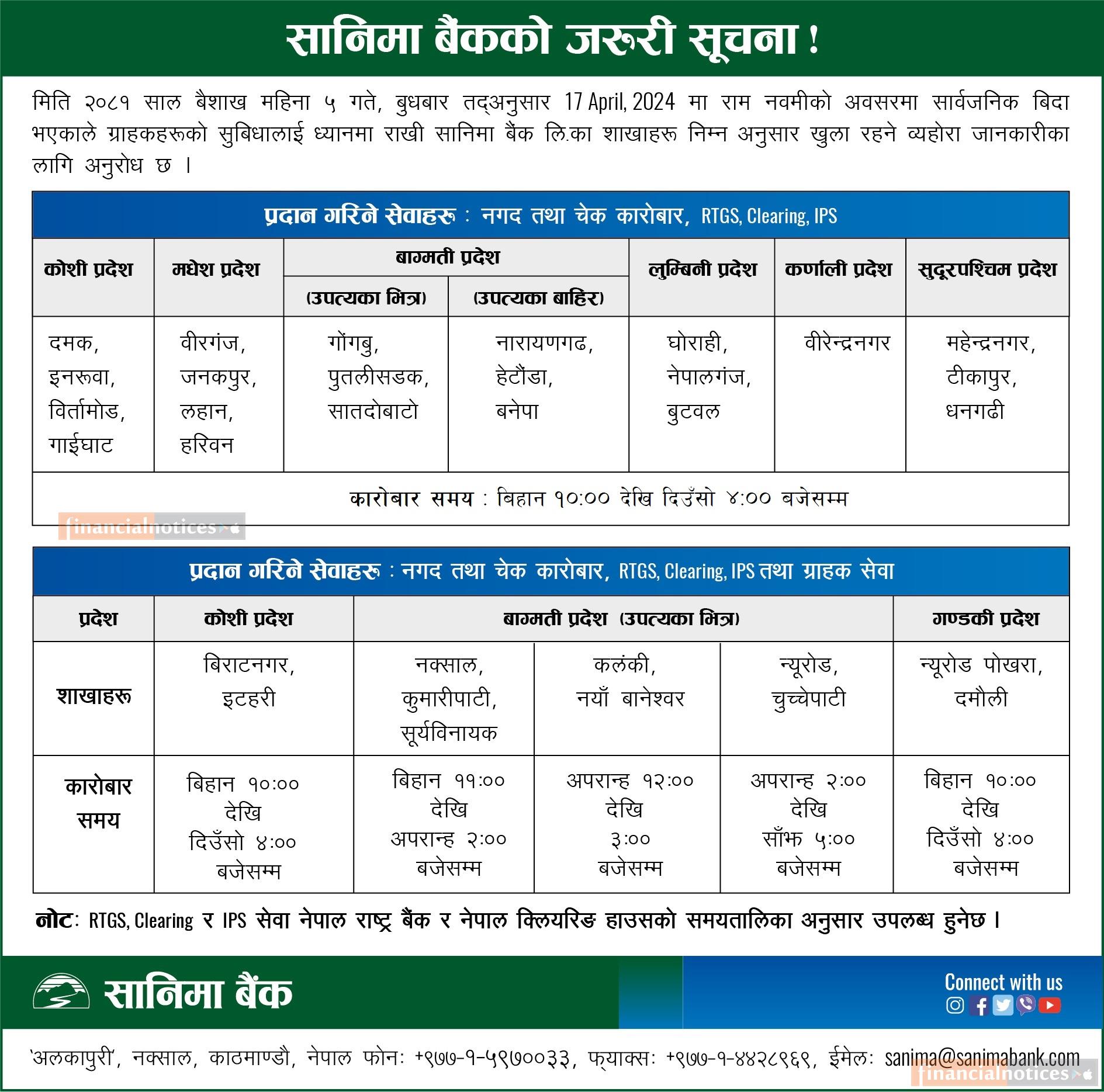 सानिमा बैंकको अत्यन्त जरुरी सूचना