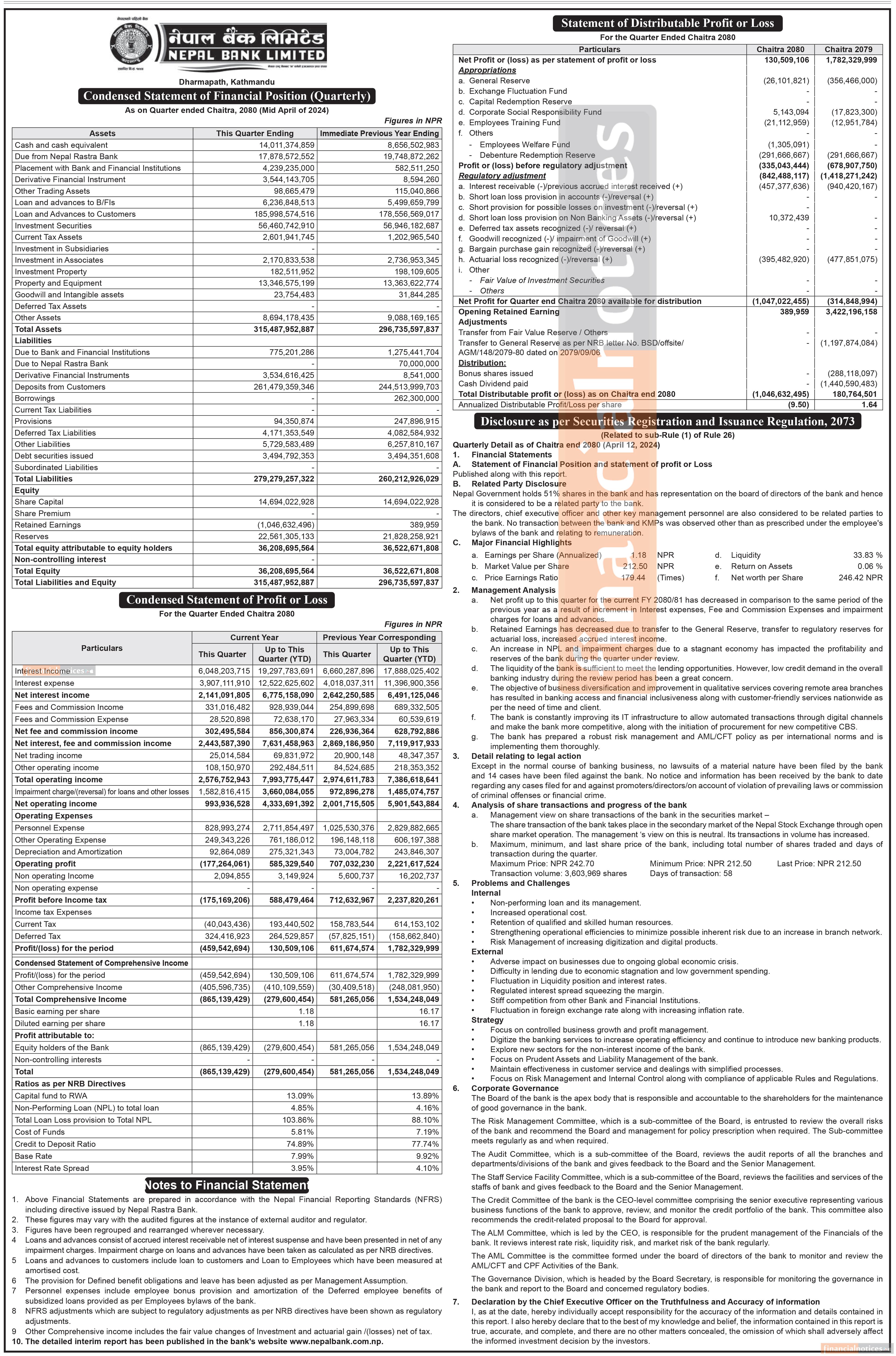 नेपाल बैंकको खुद नाफा १३ करोड ५ लाख रुपैयाँ - Q3 Report -