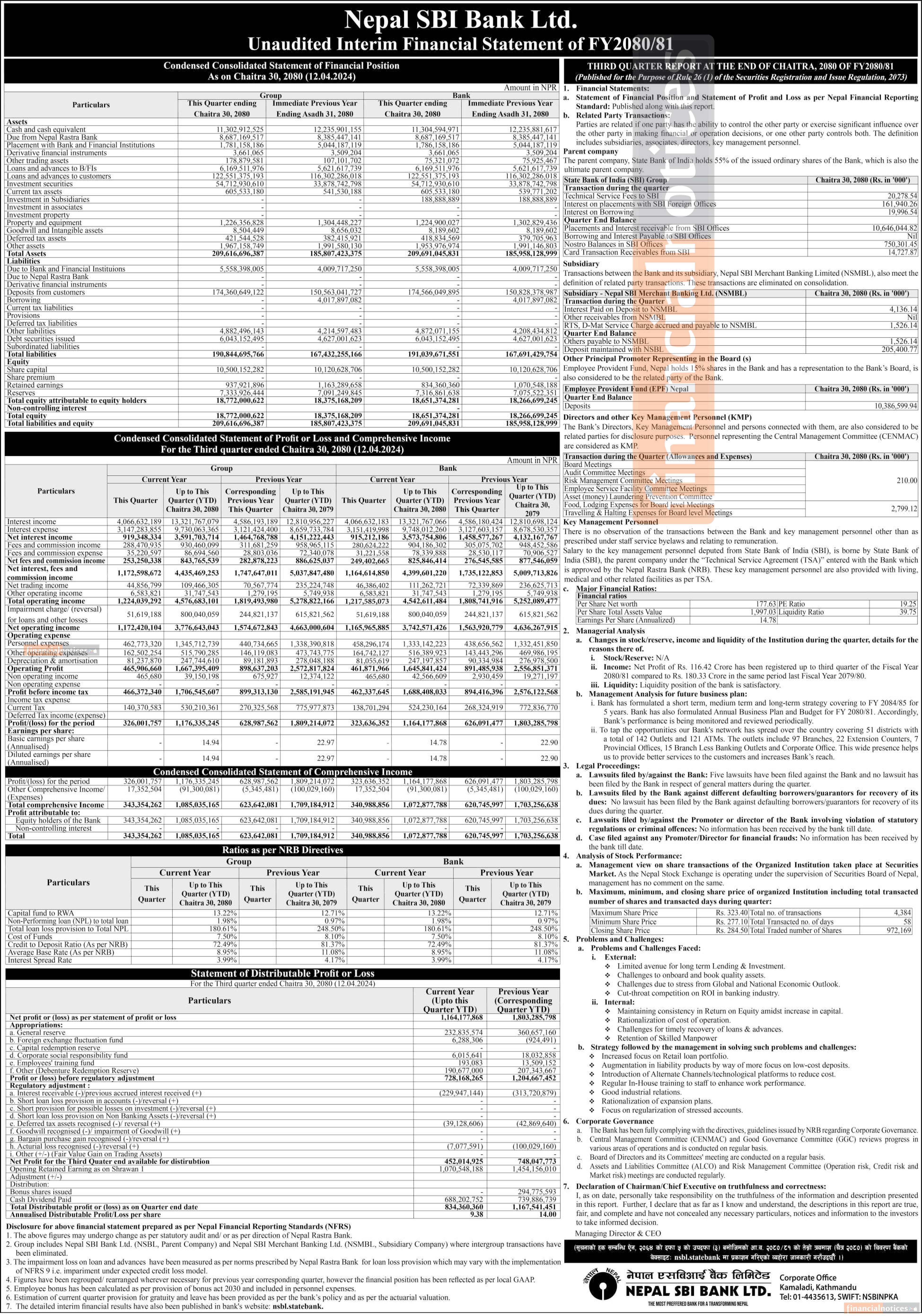 नेपाल एसबीआई बैंकको खुद नाफा १ अर्ब १६ करोड ४१ लाख रुपैयाँ - Q3 Report -