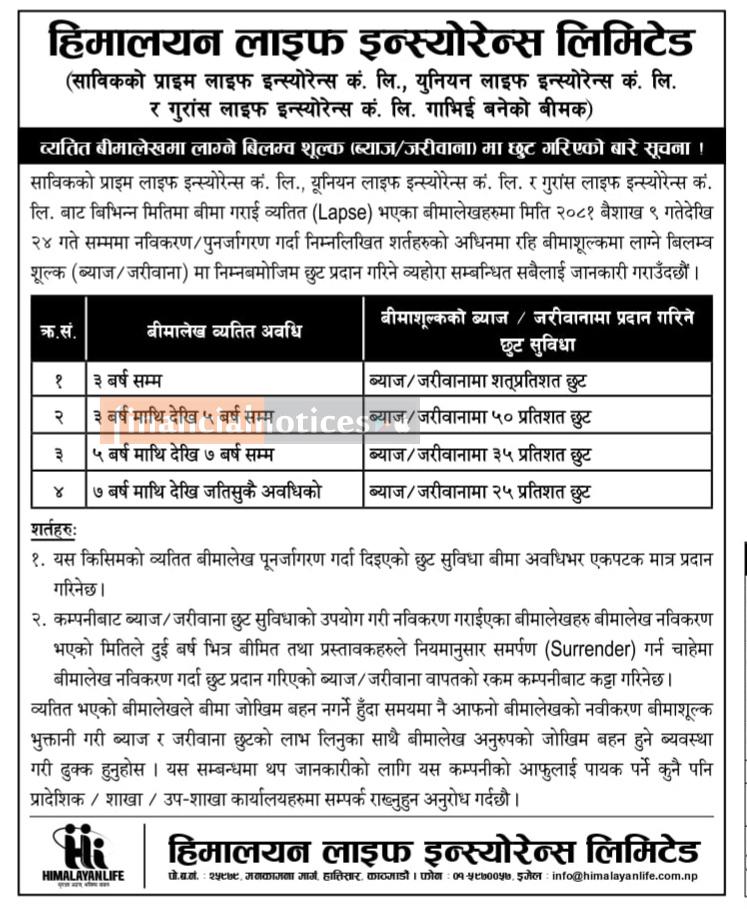 Published by Himalayan Life Insurance Limited on 2081-1-09