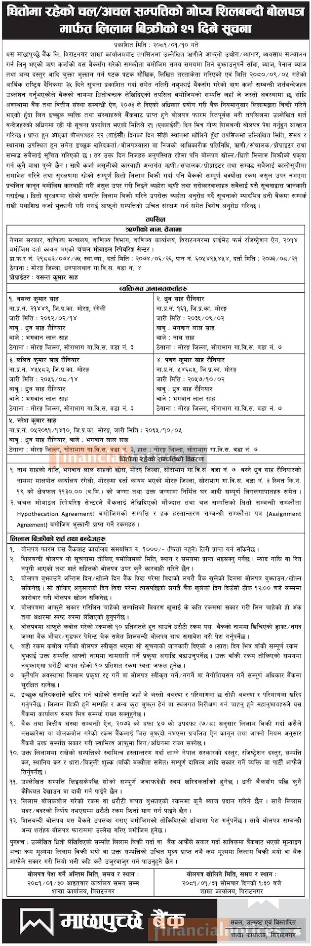 Kumari Bank Auction Notice for Non-Banking Assets at Mahendranagar, Kanchanpur -