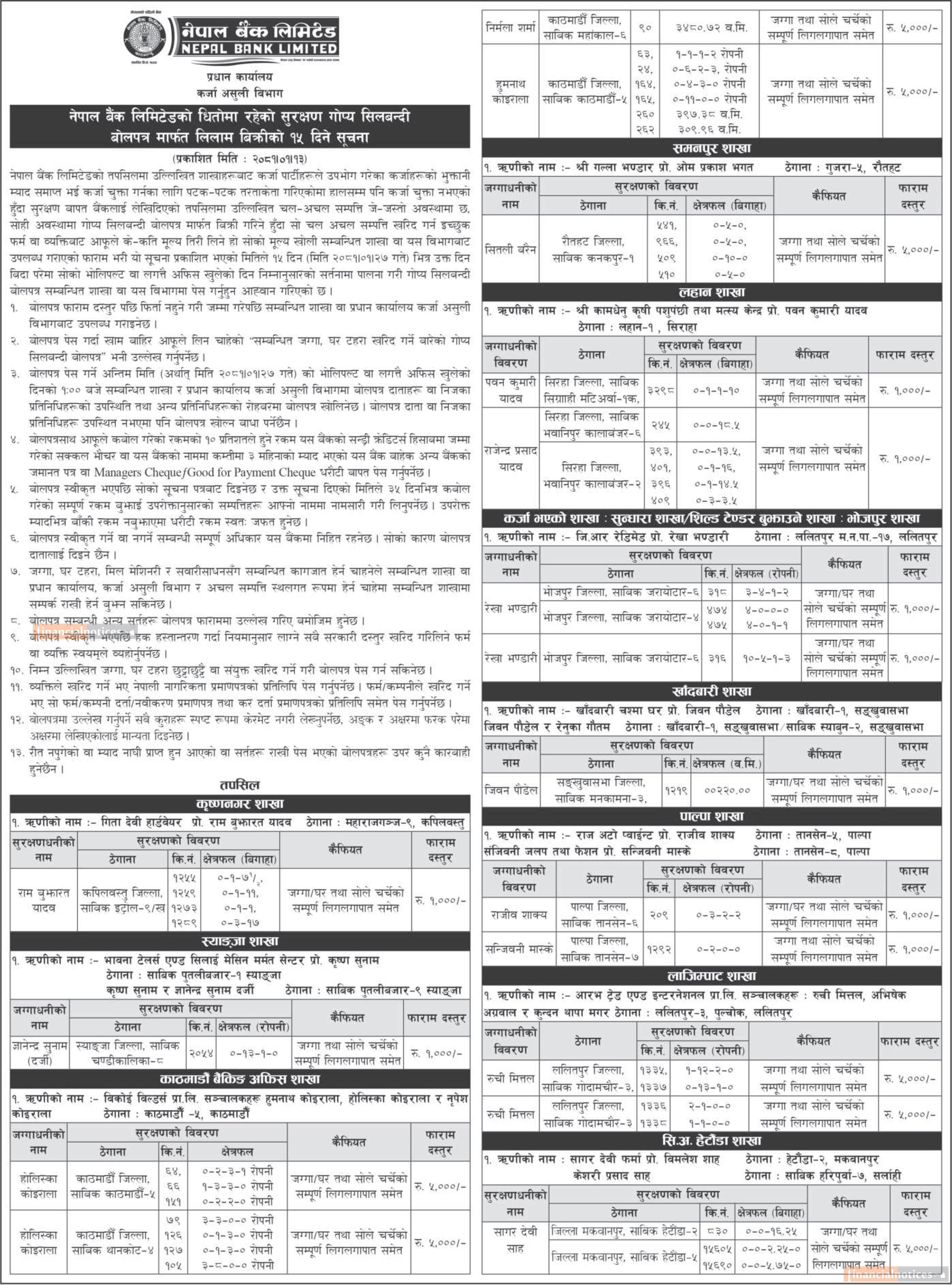 Kumari Bank Auction Notice for Non-Banking Assets at Mahendranagar, Kanchanpur -