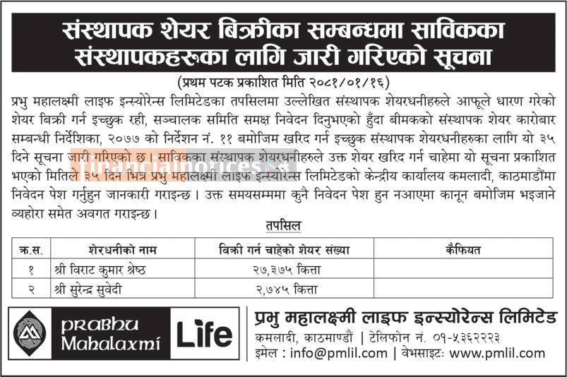 Published by Prabhu Mahalaxmi Life Insurance on 2081-1-16
