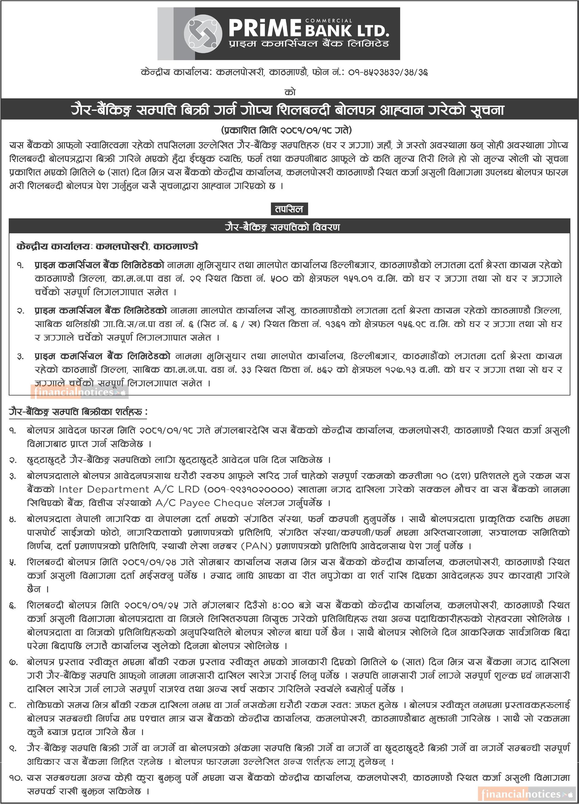 गैह्र बैंकिङ्ग सम्पत्ति लिलाम बिक्री गर्न गोप्य शिलबन्दी बोलपत्र आव्हानको सूचना