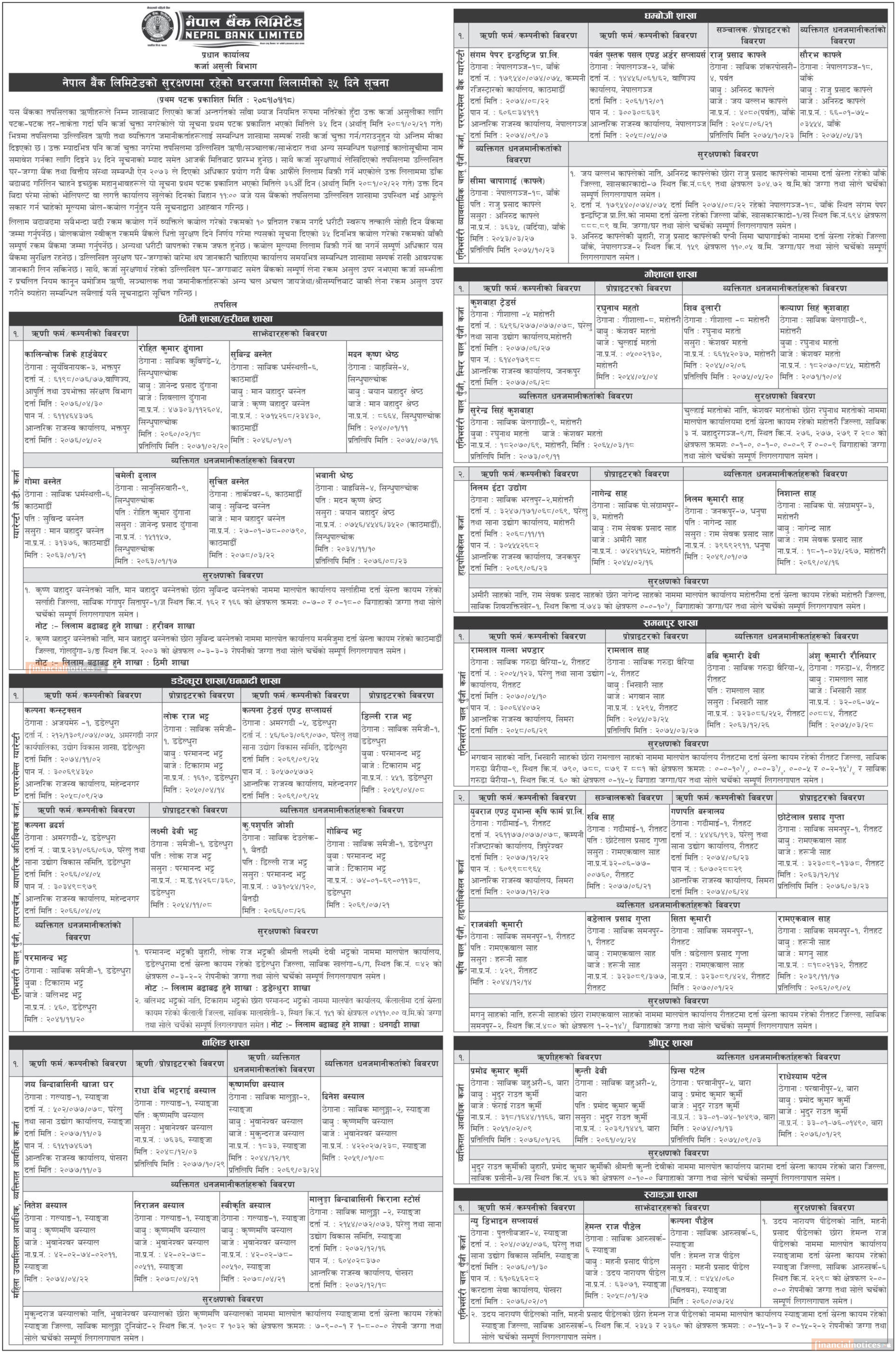 नेपाल बैंकको सुरक्षणमा रहेको घरजग्गा लिलामको ३५ दिने सूचना