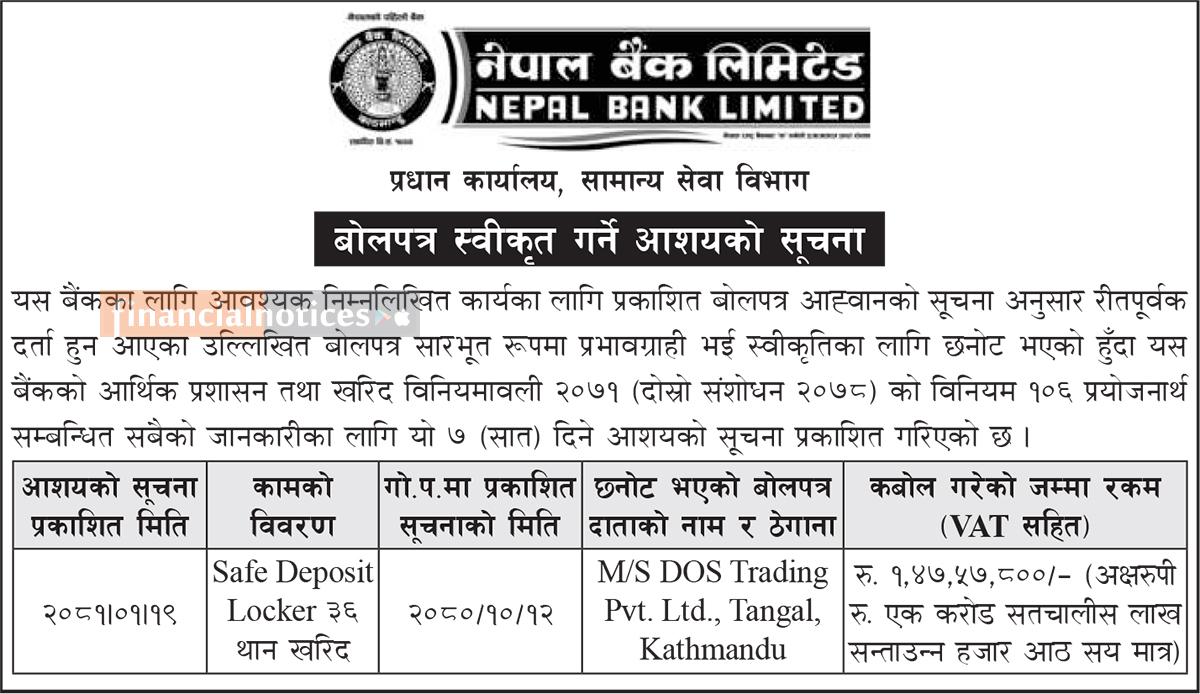 बोलपत्र स्वीकृत गर्ने आशयको सूचना