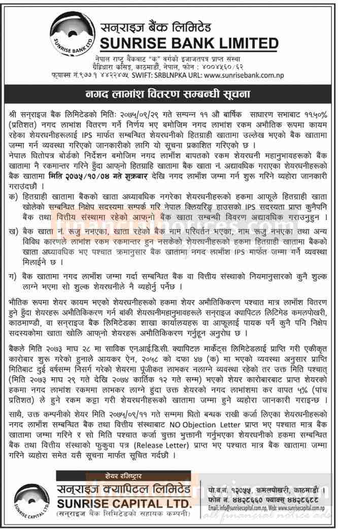 Published by Sunrise Bank Limited Annapurna Post on 2075-10-04