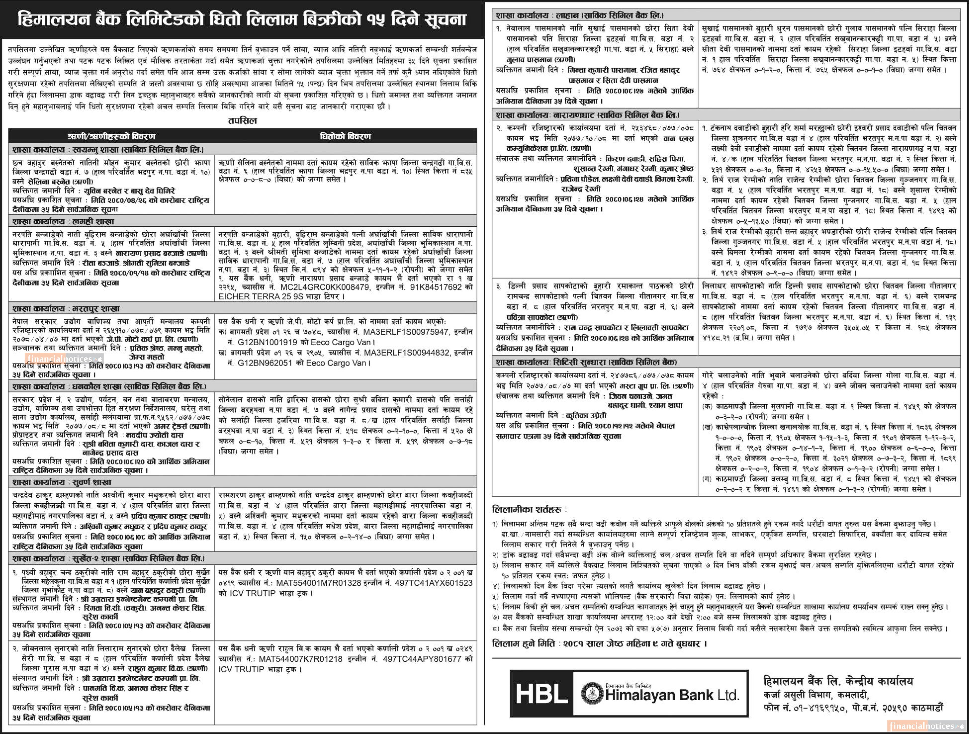 हिमालयन बैंकको धितो लिलाम बिक्रीको सूचना -