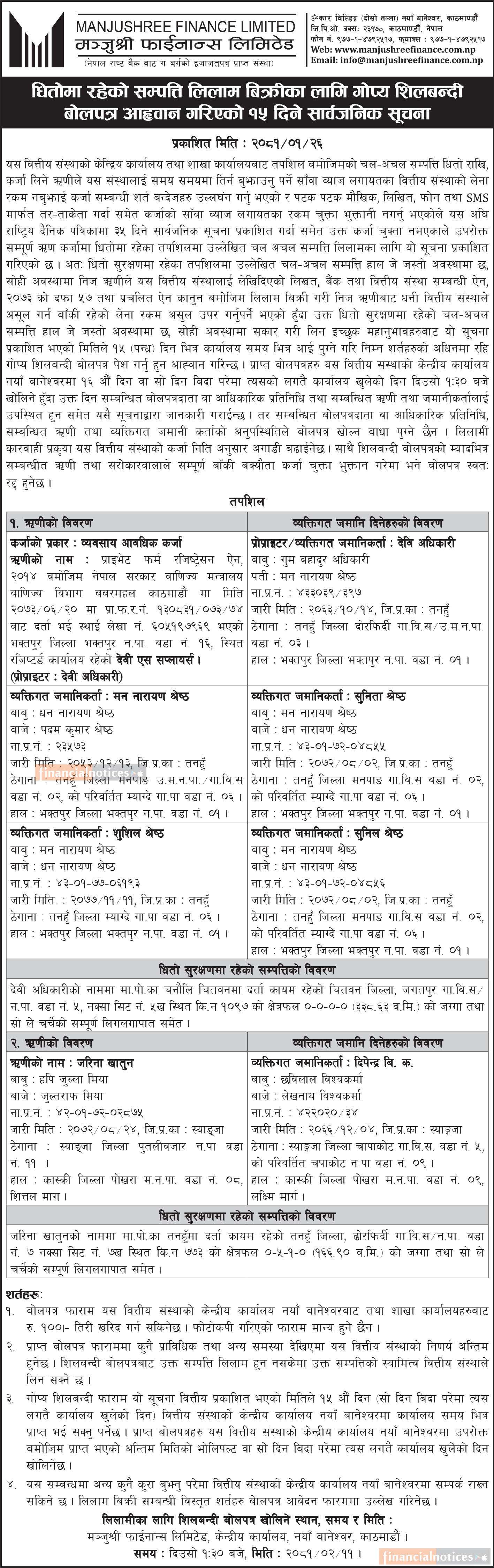 Kumari Bank Auction Notice for Non-Banking Assets at Mahendranagar, Kanchanpur -