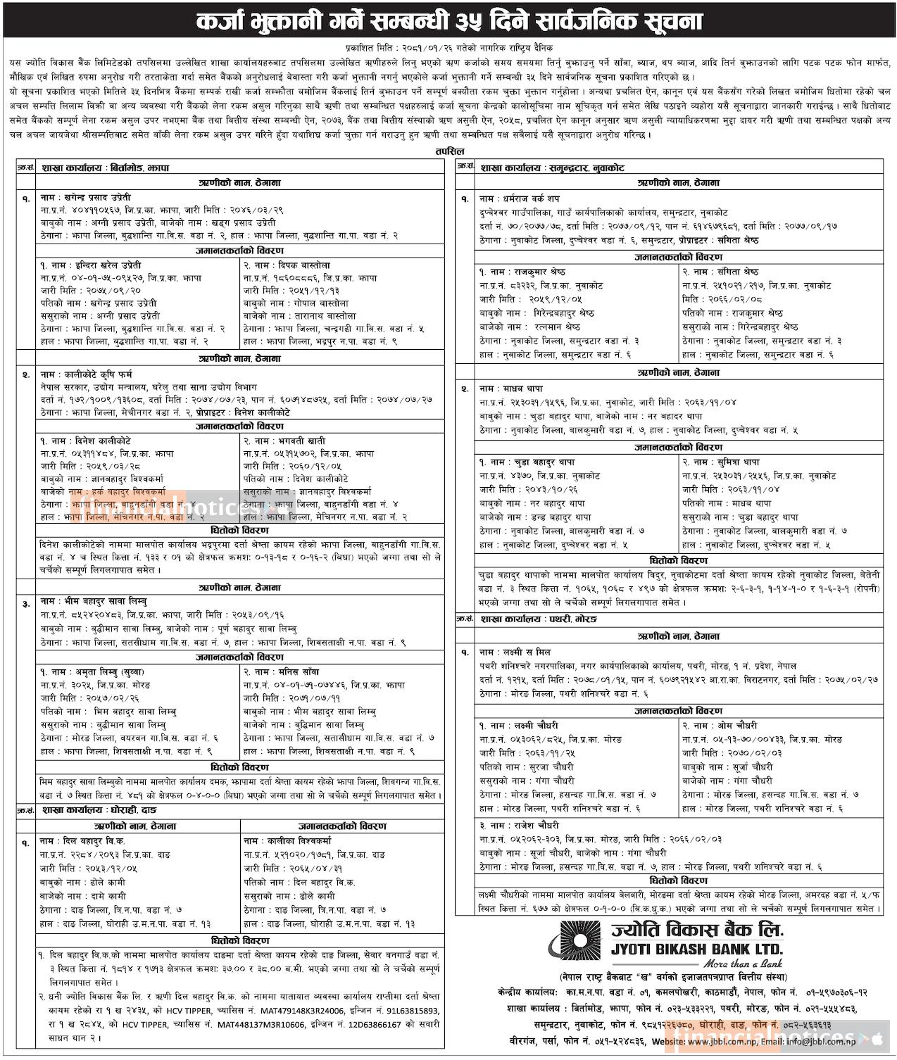 कर्जा भुक्तानी गर्ने सम्बन्धी ३५ दिने सार्वजनिक सूचना