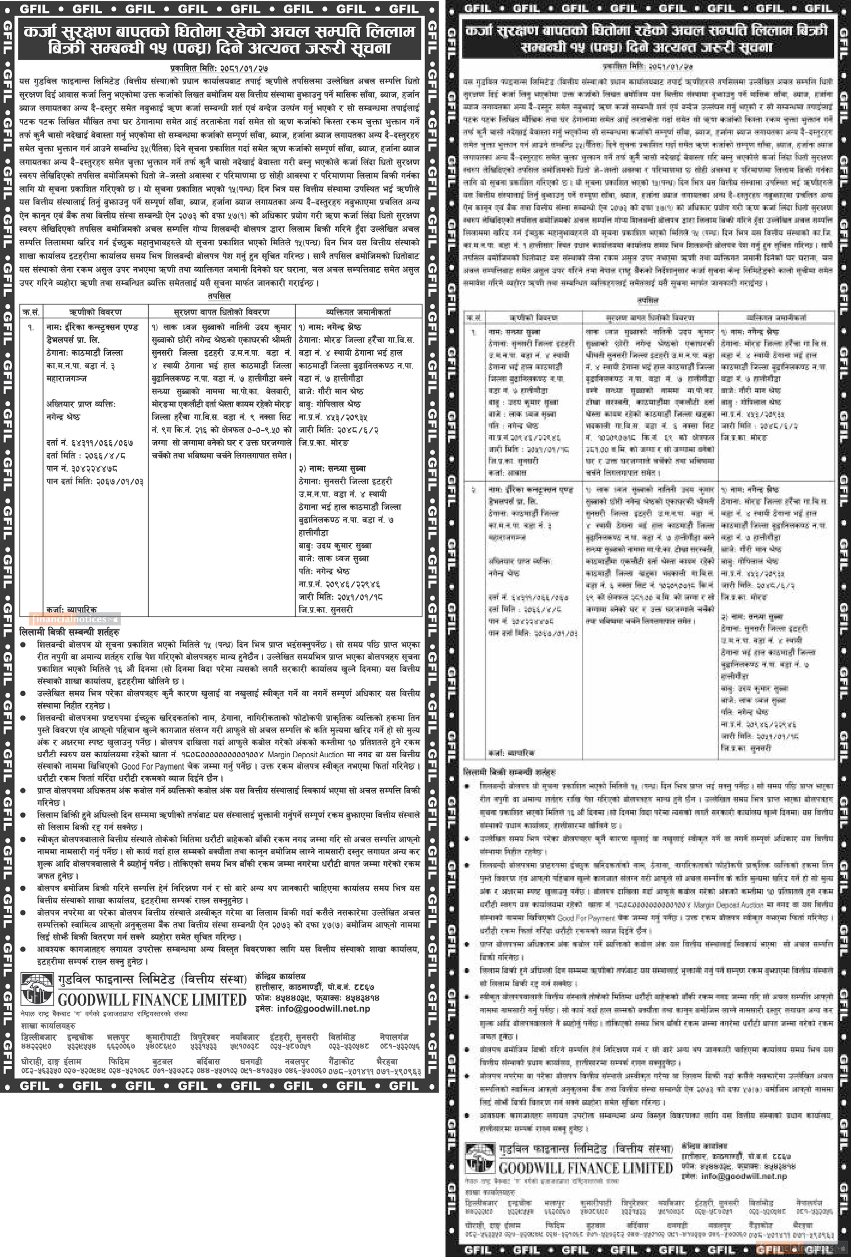 Kumari Bank Auction Notice for Non-Banking Assets at Mahendranagar, Kanchanpur -
