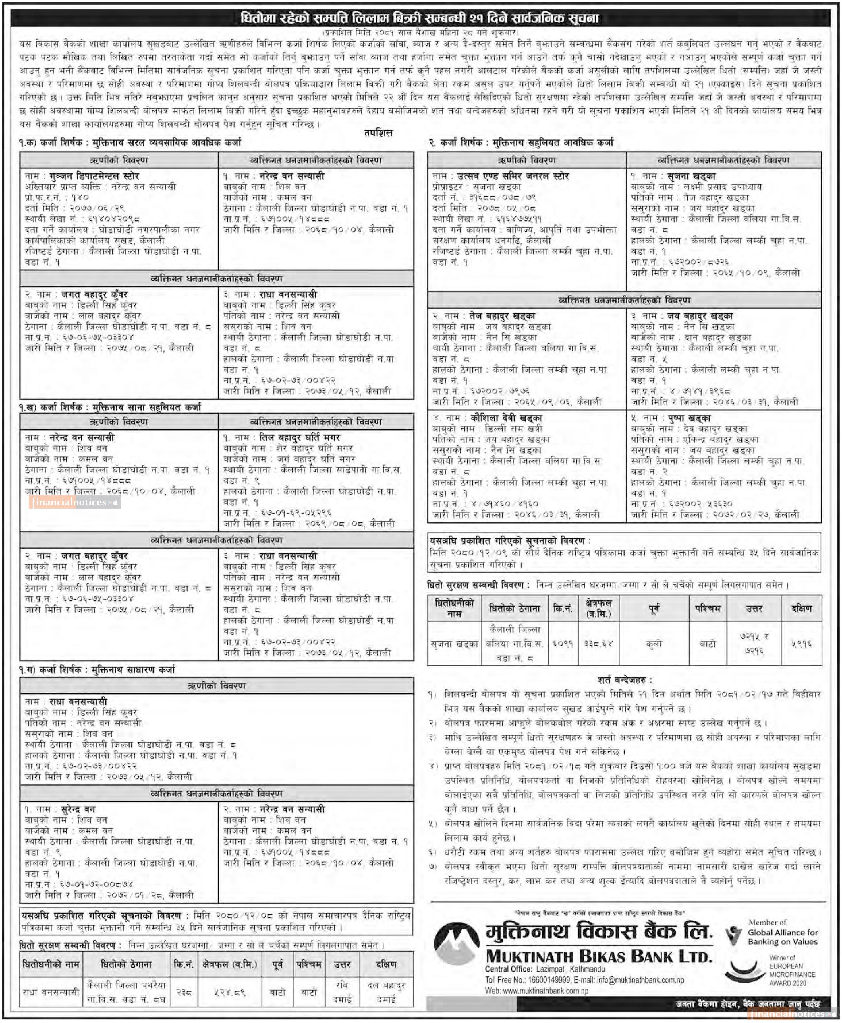 धितोमा रहेको सम्पत्ति लिलाम बिक्री सम्बन्धी २१ दिने सार्वजनिक सूचना