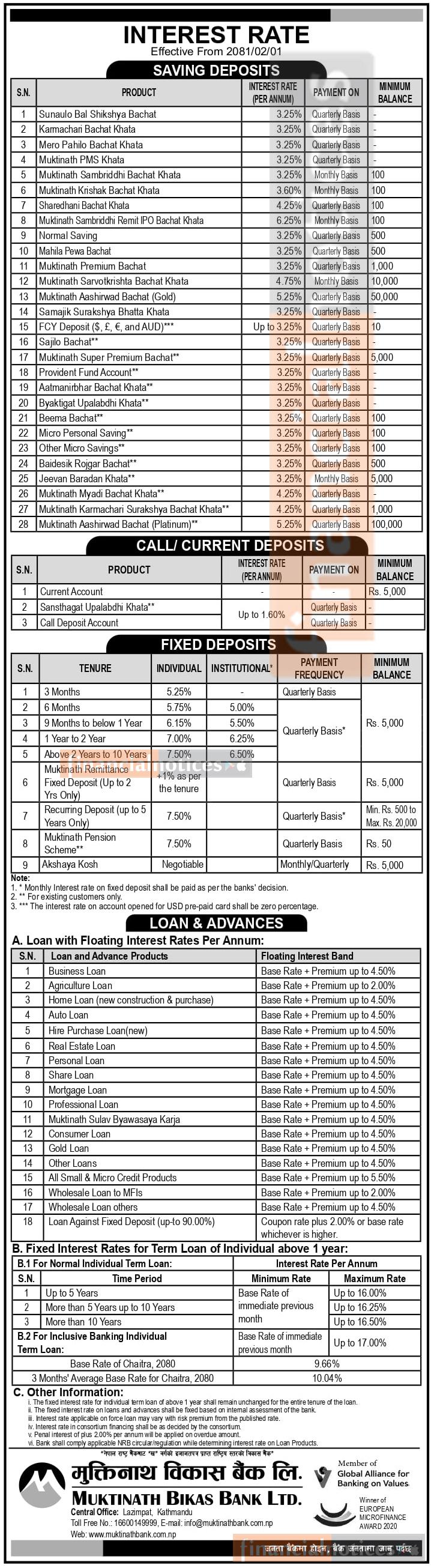 मुक्तिनाथ विकास बैंकको नयाँ ब्याजदर सार्वजानिक, कुन खातामा कति पुग्यो ?