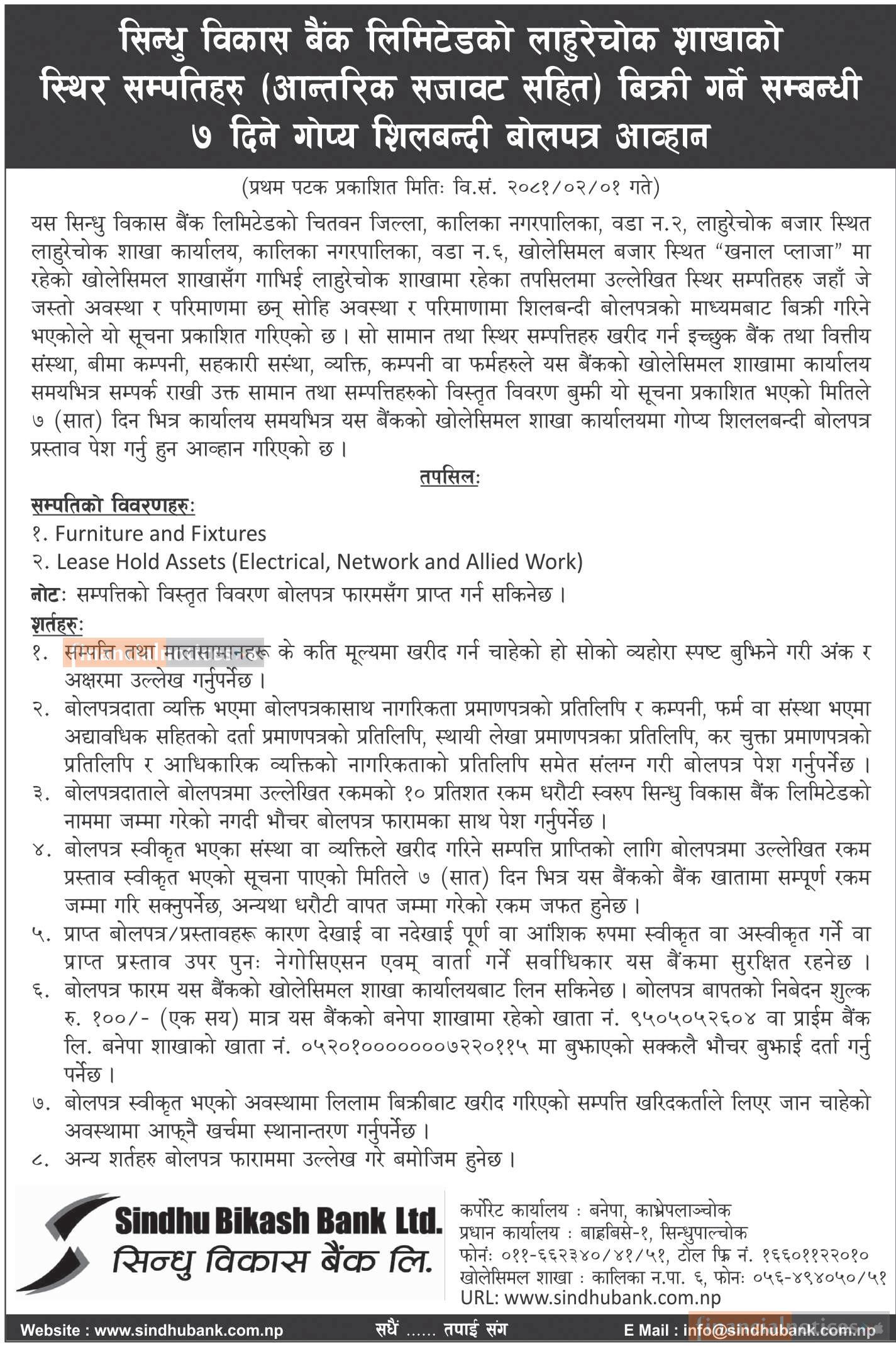 स्थिर सम्पत्तिहरु बिक्री गर्ने सम्बन्त्री सूचना