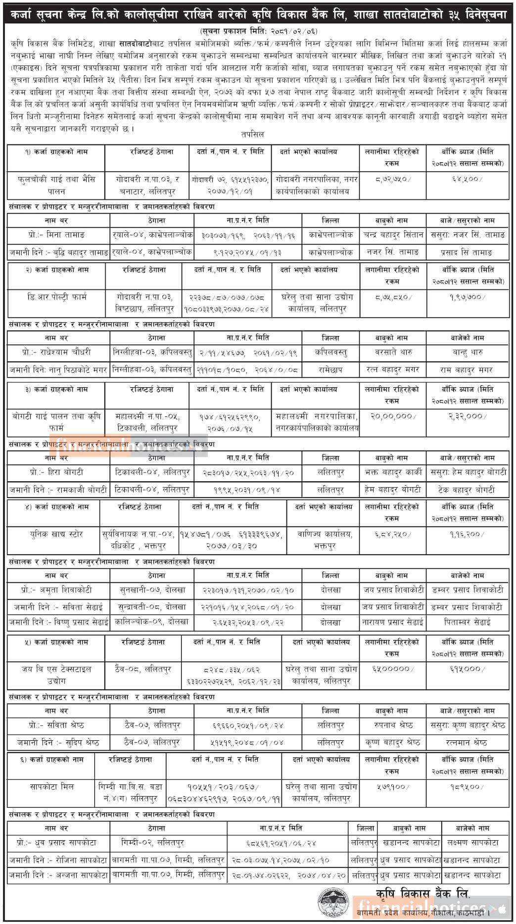 कर्जा सूचना केन्द्रको कालोसूचीमा राखिने बारे कृषि विकास बैंकको ३५ दिने सूचना