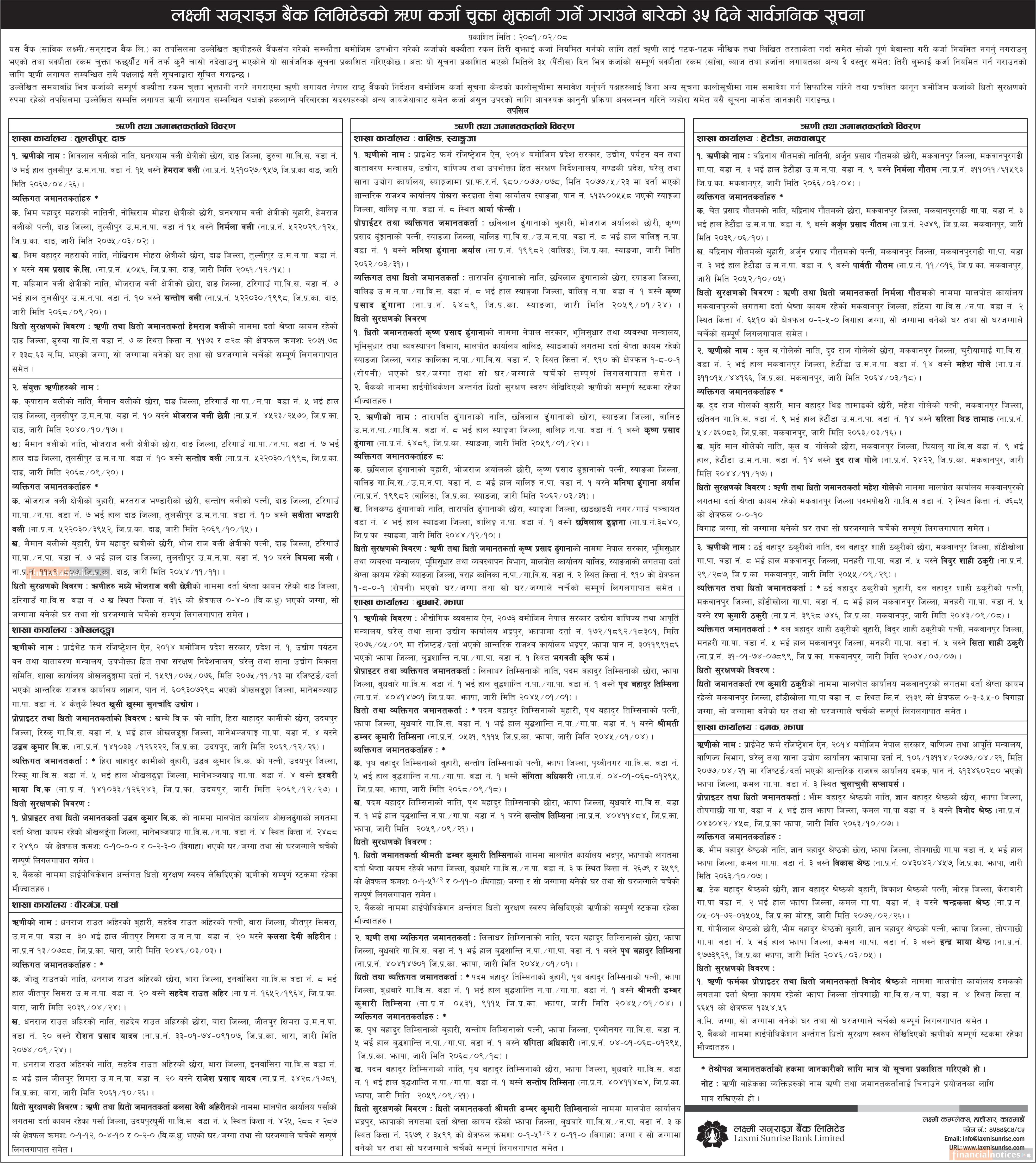 लक्ष्मी सन्राइज बैंकको ऋण कर्जा भुक्तानी सम्बन्धी सूचना -