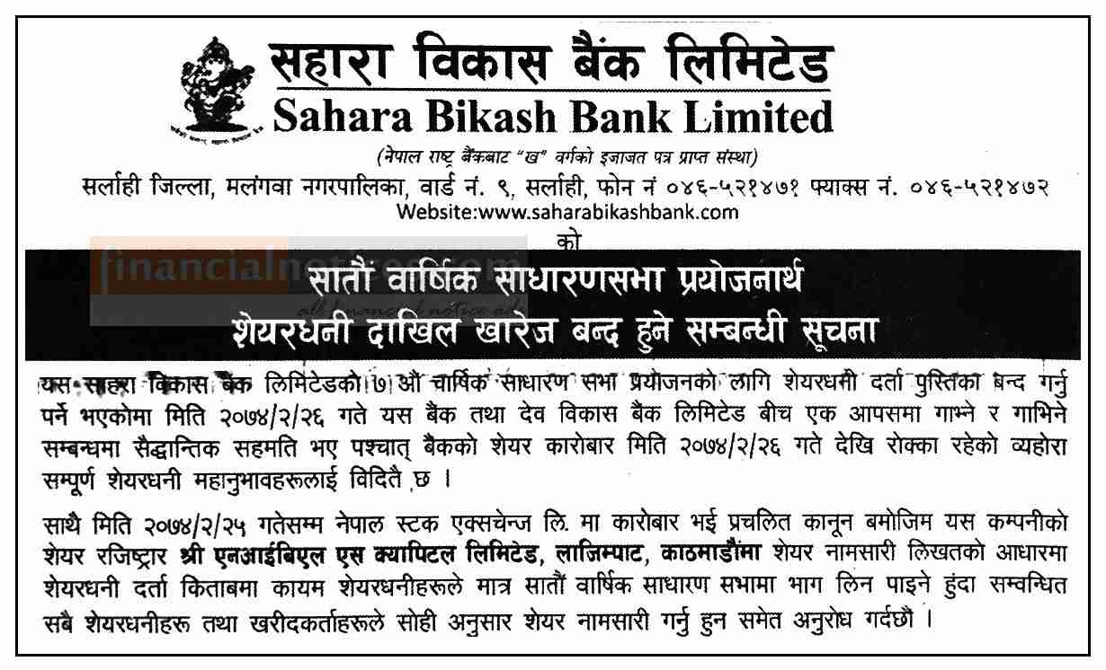 Published by Sahara Bikas Bank Karobar on 2075-10-10