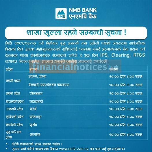 बिदाको दिन बैंकको शाखा कार्यालय खुल्ला रहने सम्बन्धी सूचना -