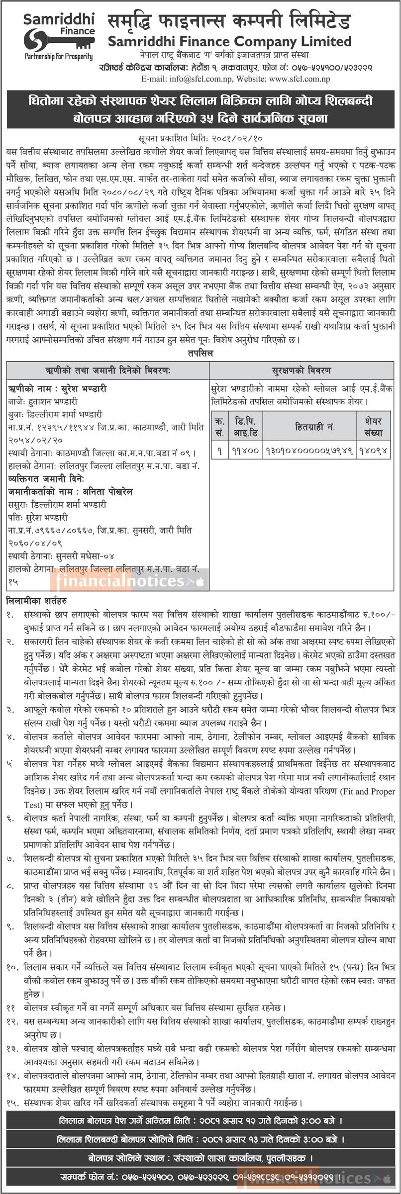 धितोमा रहेको संस्थापक शेयर लिलाम बिक्री हुने सम्बन्धी ३५ दिने सूचना