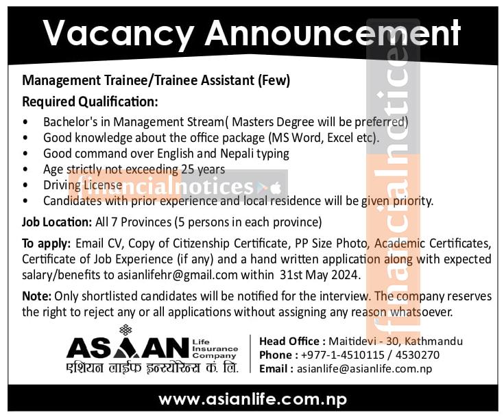 Position: Management Trainee/Trainee Assistant (Limited Openings)