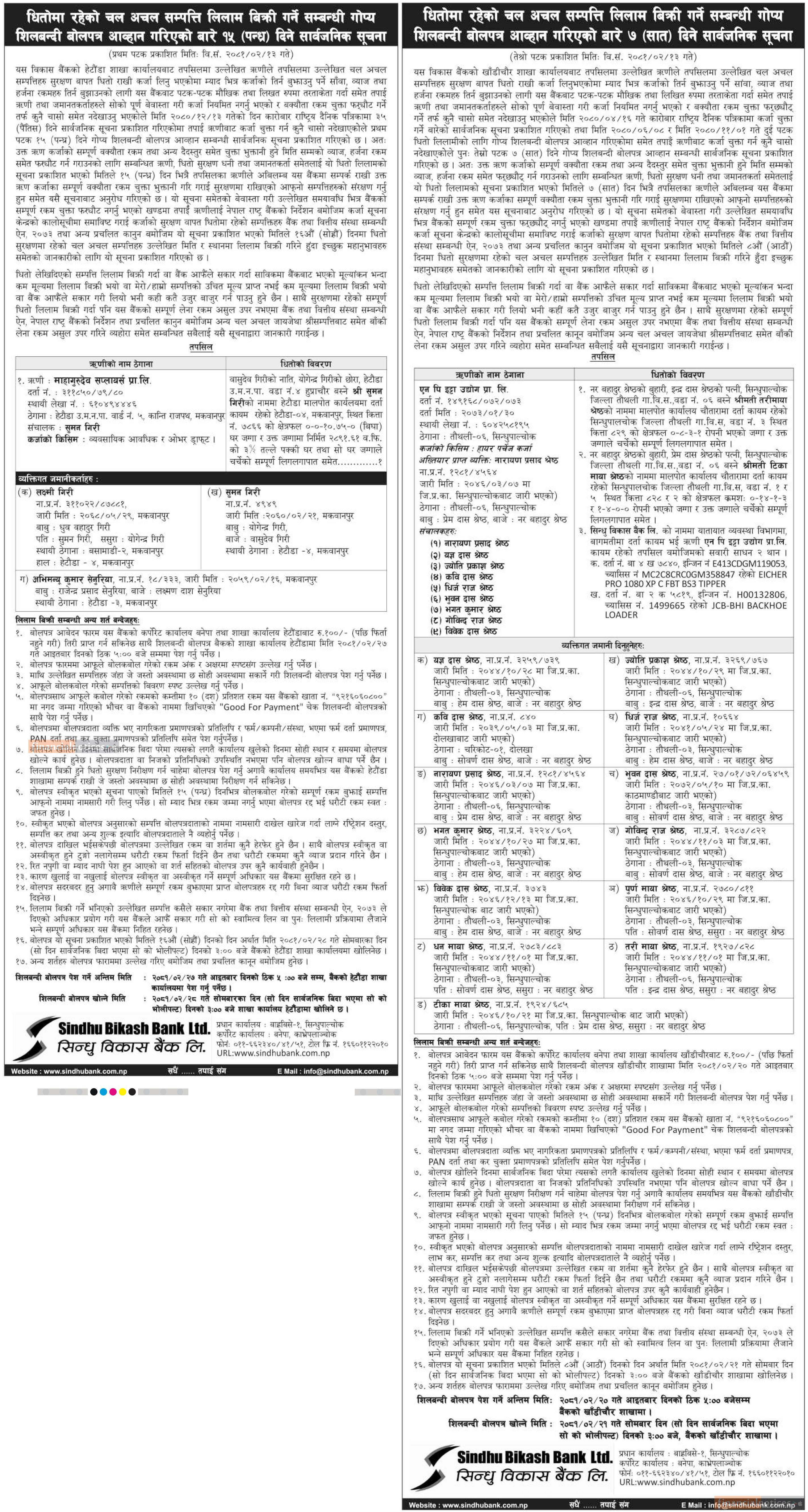 धितोमा रहेको चल अचल सम्पत्ति लिलाम बिक्री गर्ने सम्बन्धी सूचना