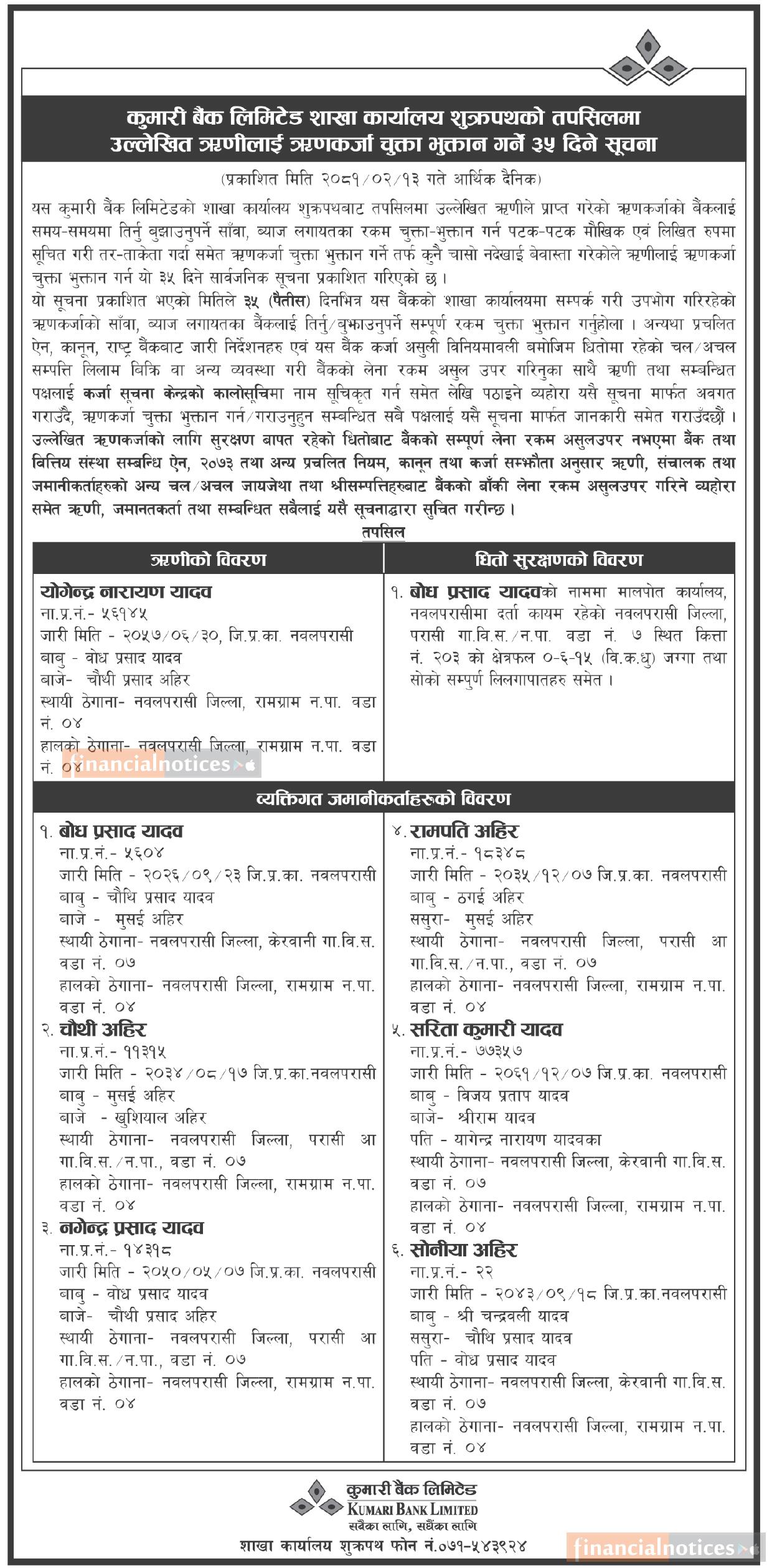 Published by Kumari Bank Ltd (KBL) on 2081-2-13