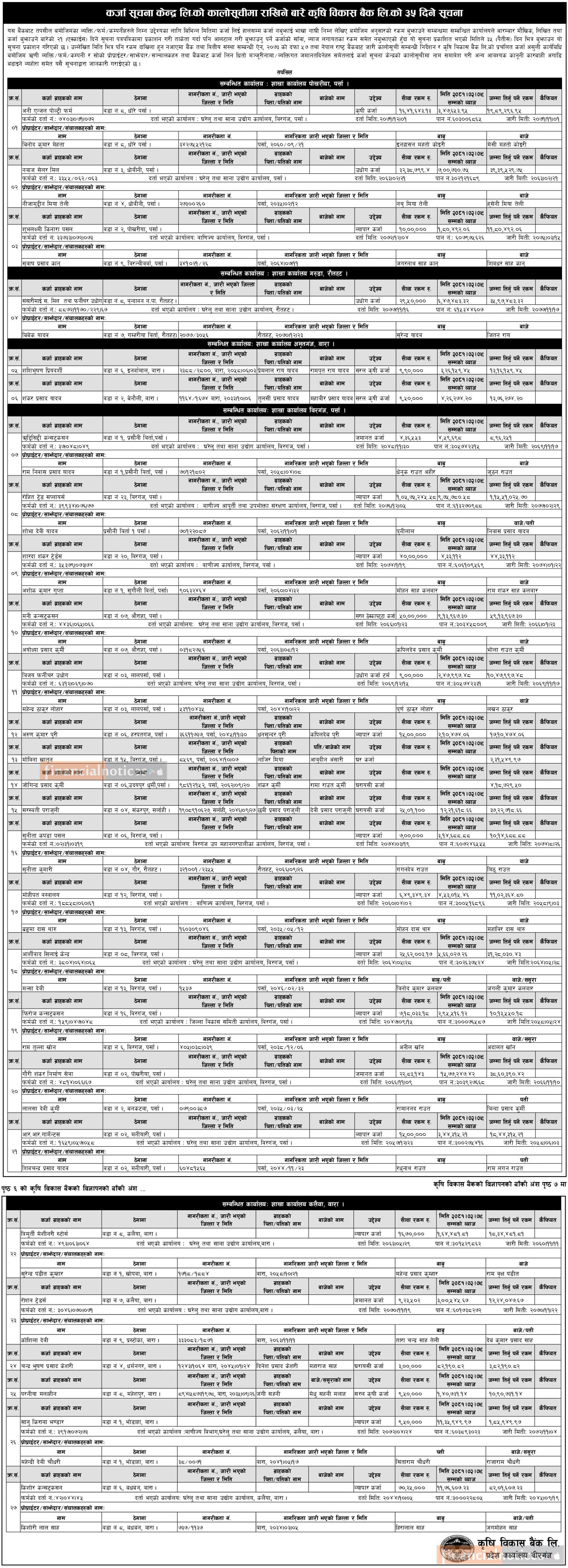 कालोसूचीमा राखिने बारे कृषि विकास बैंकको ३५ दिने सूचना