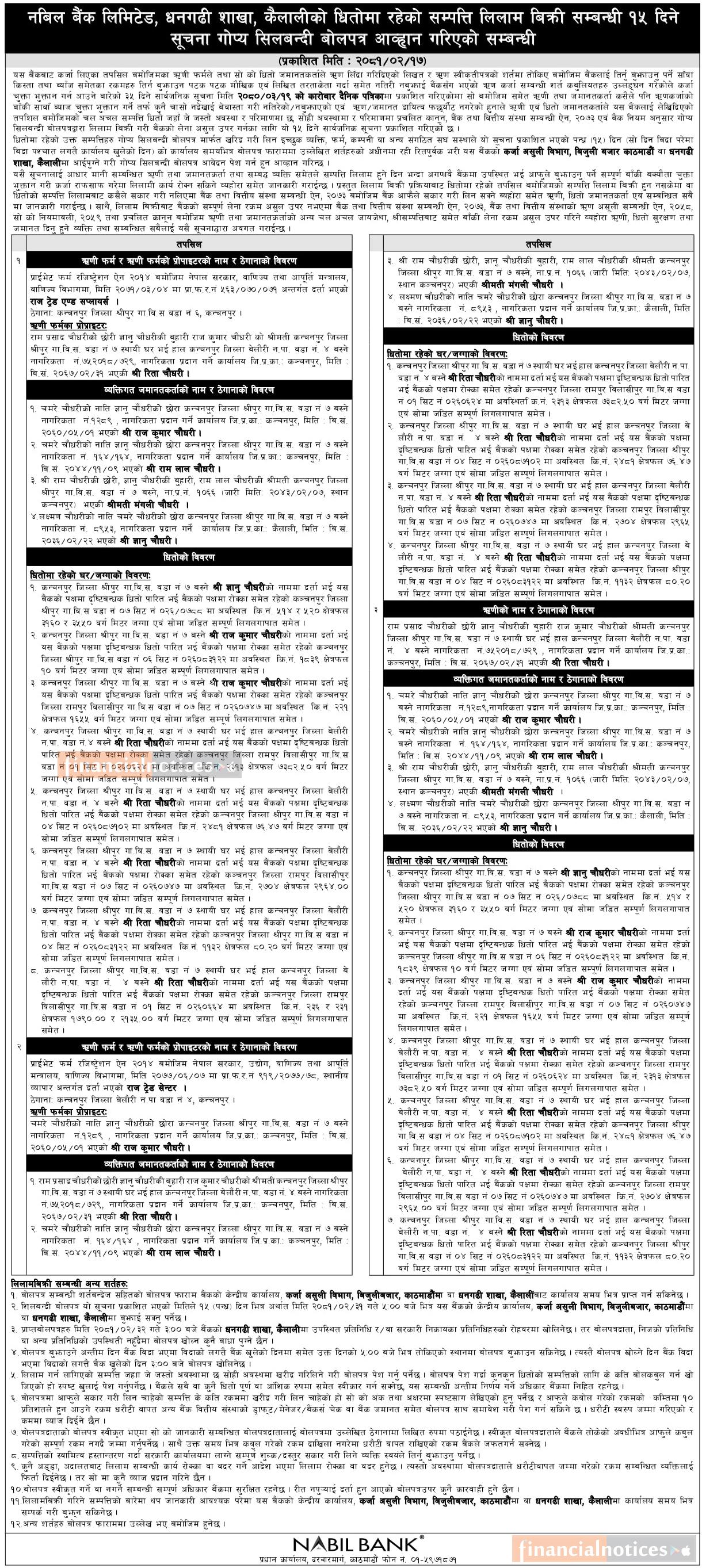 धितोमा रहेको सुरक्षण गोप्य शिलबन्दी बोलपत्र मार्फत् लिलाम बिक्रीको १५ दिने सूचना