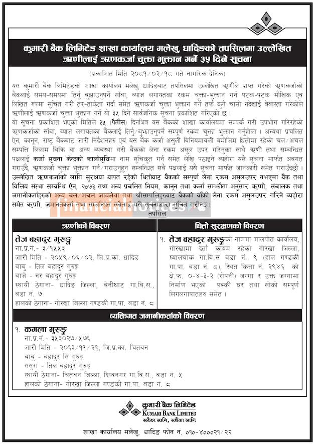 Published by Kumari Bank Ltd (KBL) on 2081-2-18