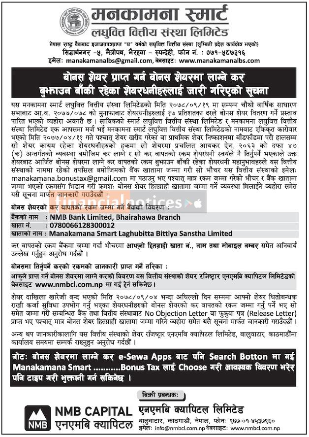 बोनश शेयर बारे शेयरधनीहरुलाई अत्यन्त जरुरी सूचना