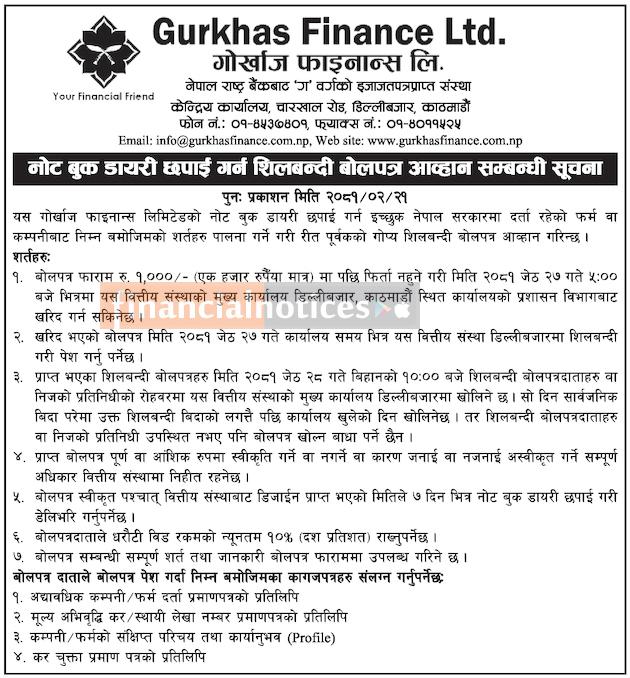 नोटबुक डायरी छपाई गर्न शिलबन्दी बोलपत्र आव्हानको सूचना