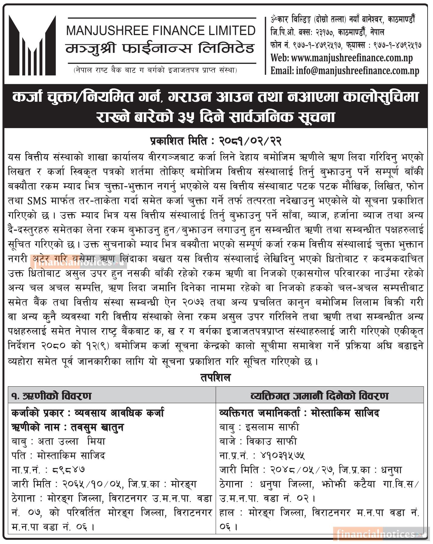कालो सूचीमा राखिने बारको ३५ दिने सार्वजनिक सूचना