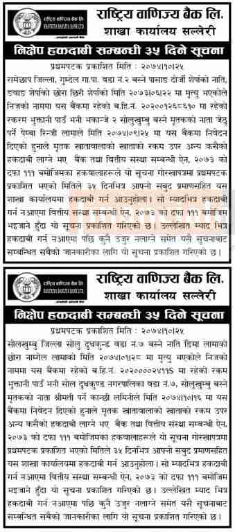 निक्षेप हकदावी सम्बन्धी ३५ दिने सूचना
