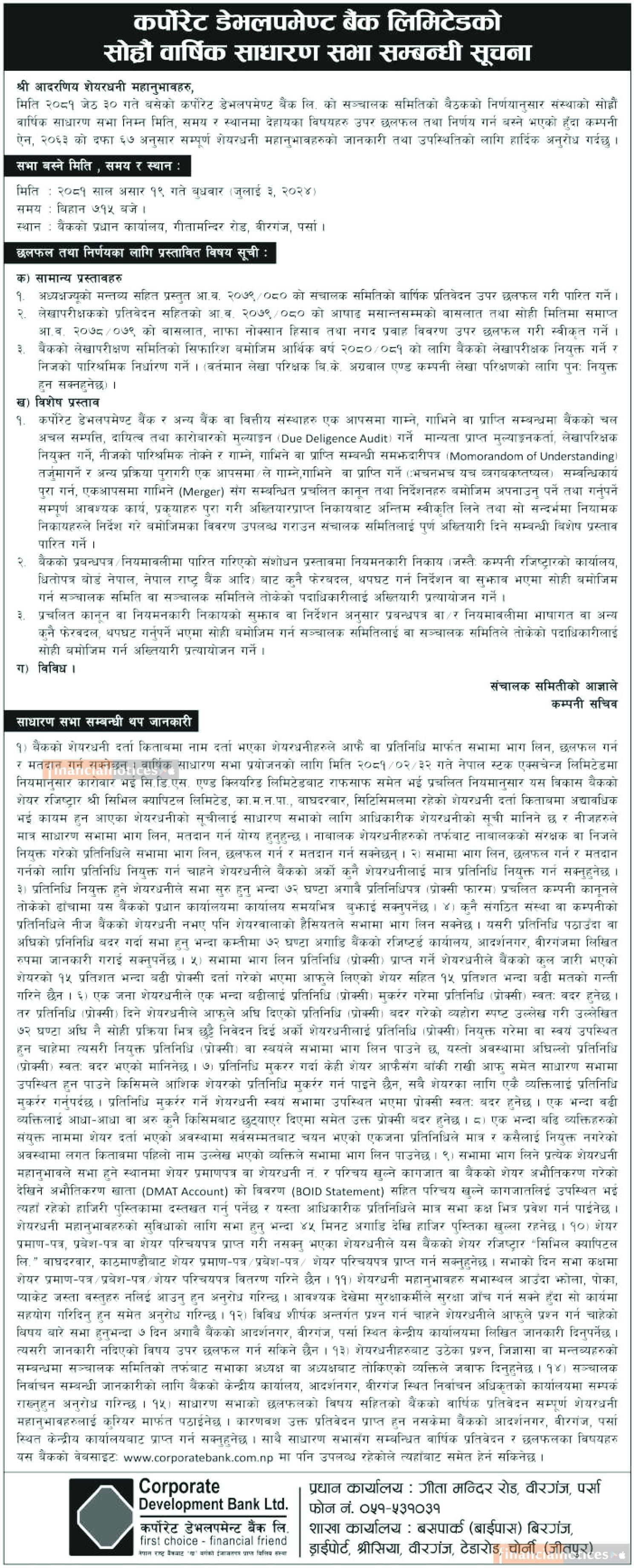 सोह्रौँ वार्षि साधारण सभा सम्बन्धी सूचना -