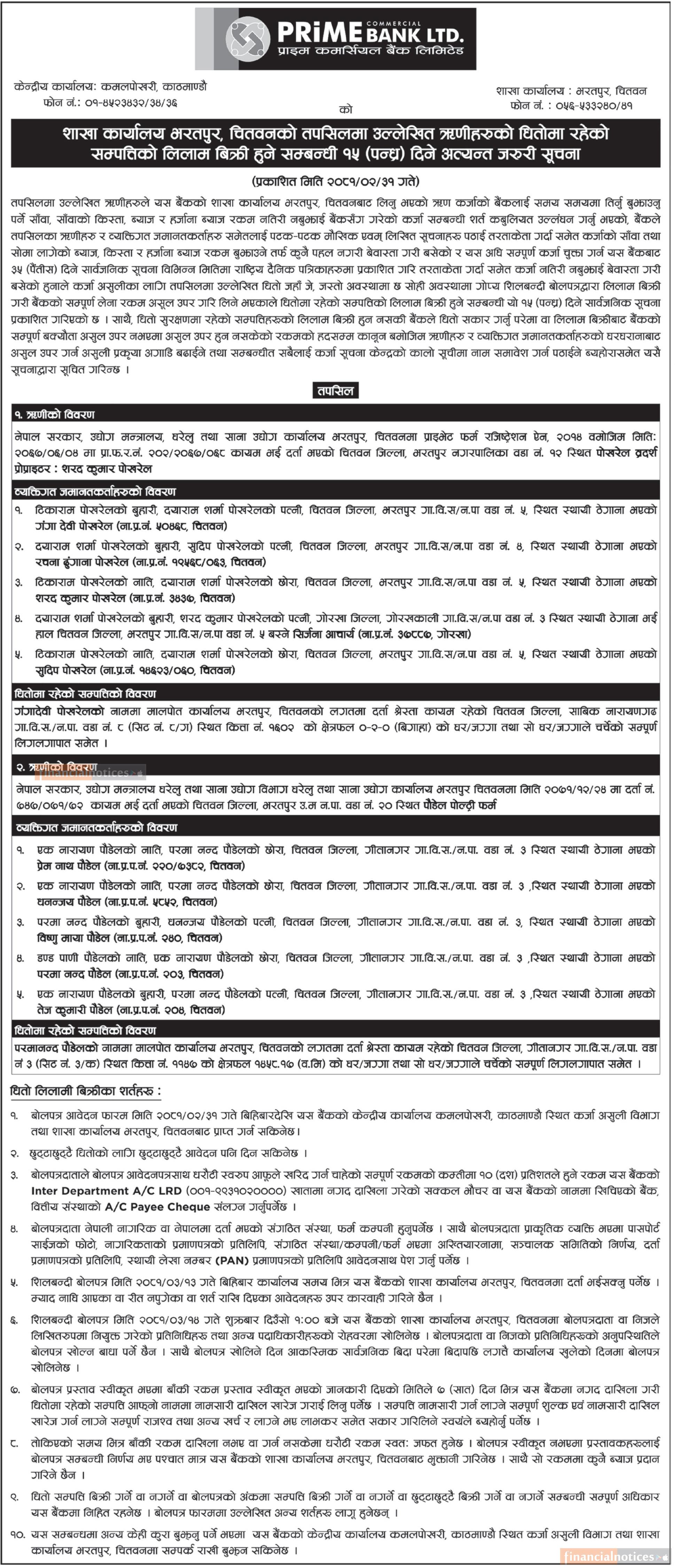 ऋणीहरुको धितोमा रहेको सम्पत्तिको लिलाम बिक्री हुने सम्बन्धी १५ दिने सूचना
