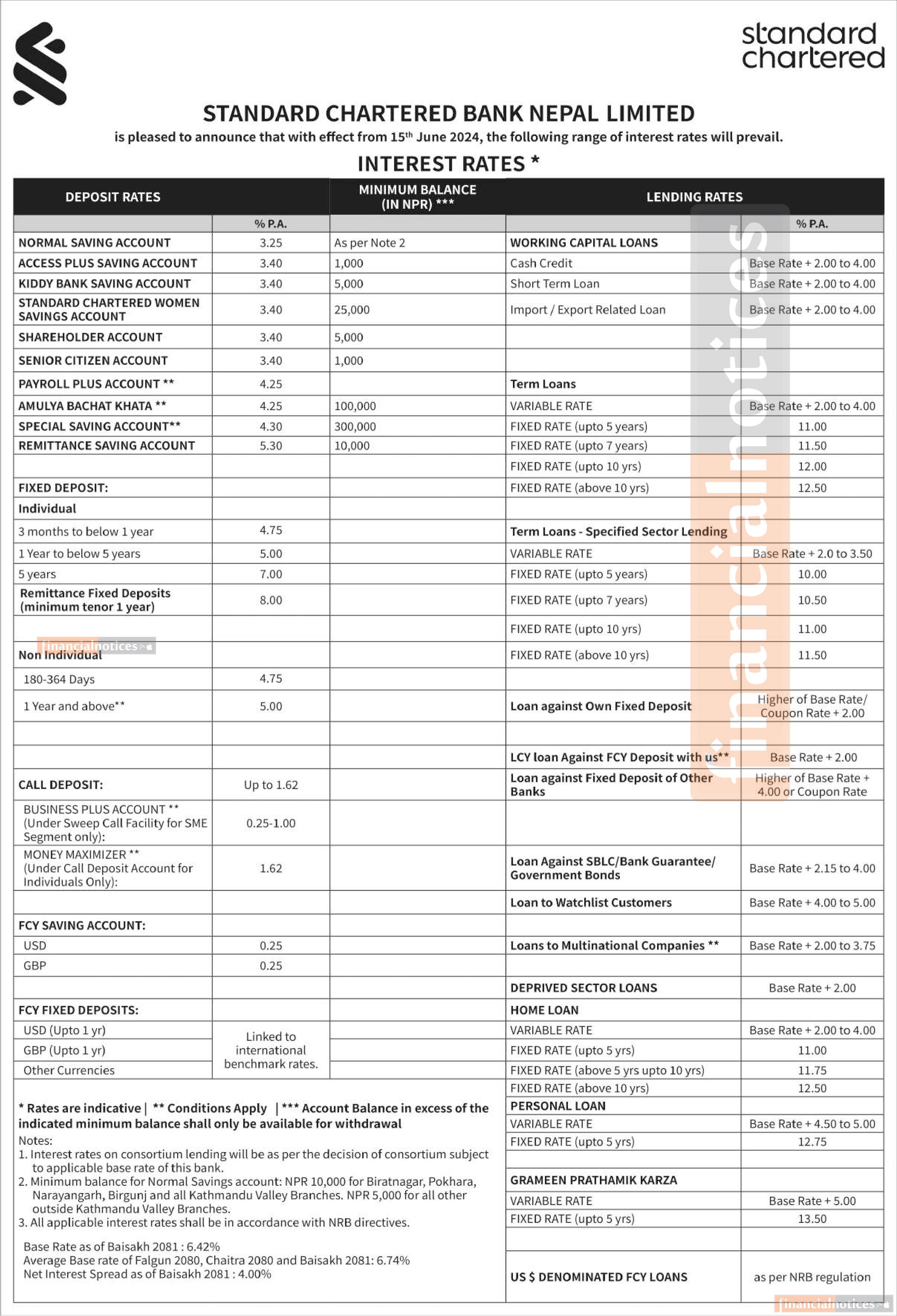 स्ट्याण्डर्ड चार्टर्ड बैंकको परिवर्तित ब्याजदर सार्वजनिक, कुन खातामा कति पुग्यो ?